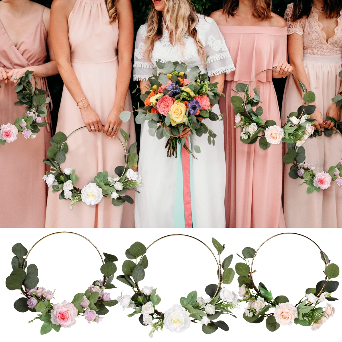 Металлическое кольцо, венок со планкой, ручная Цветочная Гирлянда подружки невесты, свадебные украшения, подвесные двери, Свадебный декор