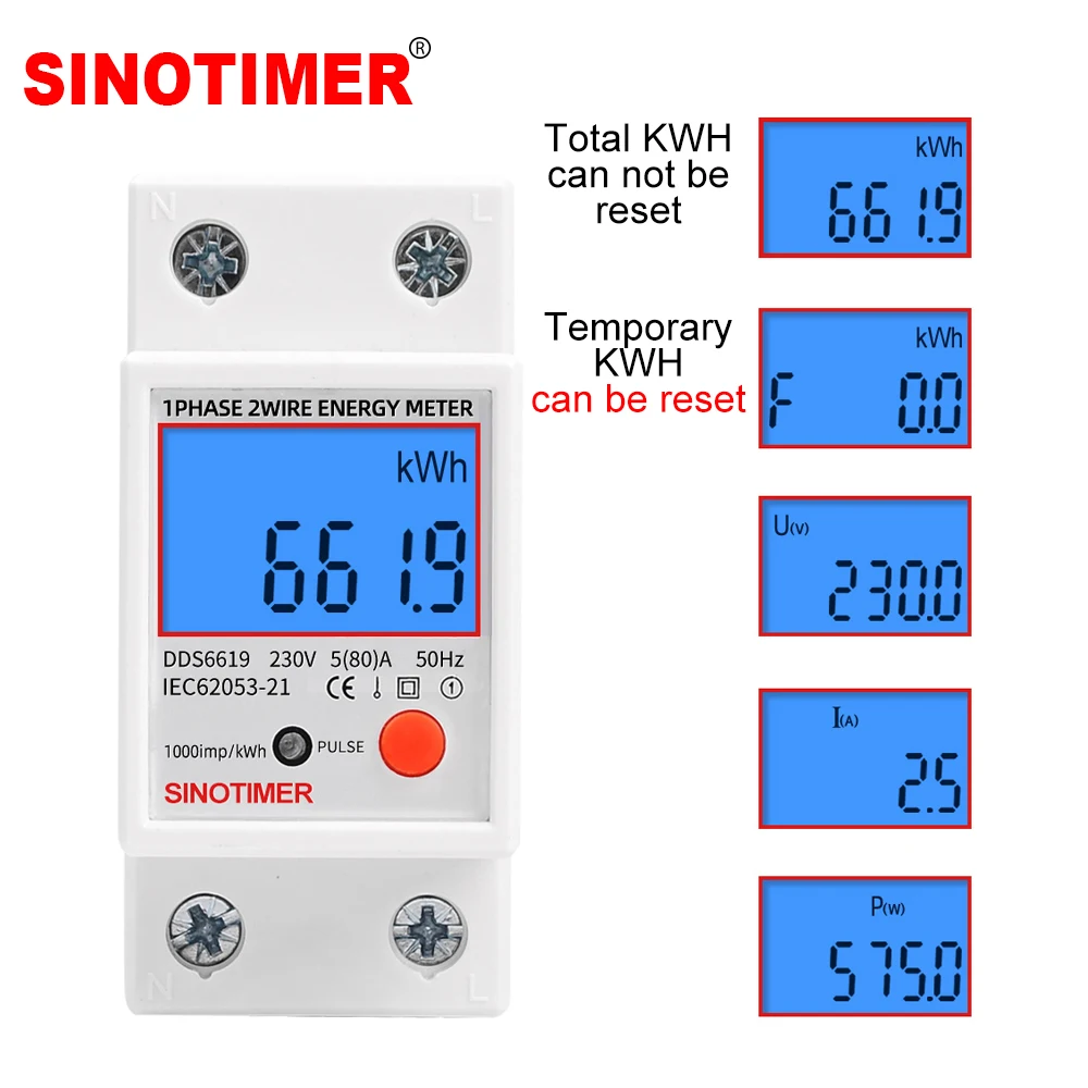 Измеритель мощности, вольтметр, амперметр с подсветкой, однофазный, 230 В, цифровой ватттметр на Din-рейку, кВтч, с функцией сброса