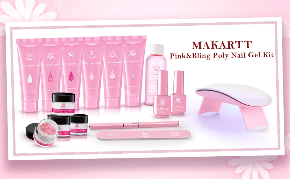 Poly сюрприз подарок поли набор гелей для ногтей: розовый и блестящий набор гелей для наращивания поставляется с 6*15 мл полигель для ногтей, 1*50 мл раствор для скольжения, 1*8 мл Базовое покрытие, 1*8 мл верхнее покрытие, 60 шт. двойная форма в 12 размерах, 1*6 Вт Светодиодный УФ-лампа для ногтей, 1 * пилочка для ногтей, 1 * Двухсторонняя щетка для ногтей и лопатка, 1 * Стразы для ногтей, 4 * Блестки для ногтей и 1 * Руководство пользователя. Идеальный подарок для дня рождения, Дня благодарения, Рождества, Нового года для мамы, жены, девушки и любителей дизайна ногтей.※Простота в использовании и удобство для начинающих: полигель для ногтей быстро сохнет под прилагаемым Светодиодный УФ-лампой для ногтей в течение 2-3 минут. Данное руководство пользователя дает подробные инструкции о том, как легко сделать аккуратные и красивые наращивания ногтей даже новичкам.Долговечность и долговечность: при правильном нанесении и приготовлении ногтей (подача, буферизация и чистка) Розовый Удлинительный гель может длиться до примерно месяца или даже дольше. Нанесите Дегидратор и праймер для лучшего сцепления, чтобы сделать полигель для ногтей дольше.※Included включает в себя раствор скольжения: предоставленный раствор скольжения помогает предотвратить Приклеивание геля на щетку для ногтей и шпатель. Таким образом, полигель для ногтей может быть выбран и сформирован на двойная форма равномерно и гладко. Этот новый Удлинительный гель намного тоньше и прочнее, чем обычный УФ-гель.Добавляем Гель-лак для ногтей и другие украшения для дизайна ногтей, чтобы создать желаемые стили.※Другое необходимое оборудование для ногтей: чтобы изменить стили ногтей или удалить поли гель для ногтей, требуется сильная дрель для ногтей для более быстрого и чистого эффекта. Мы настоятельно рекомендуем Makartt JD700 сверло для ногтей, чтобы удалить поли гель для ногтей.