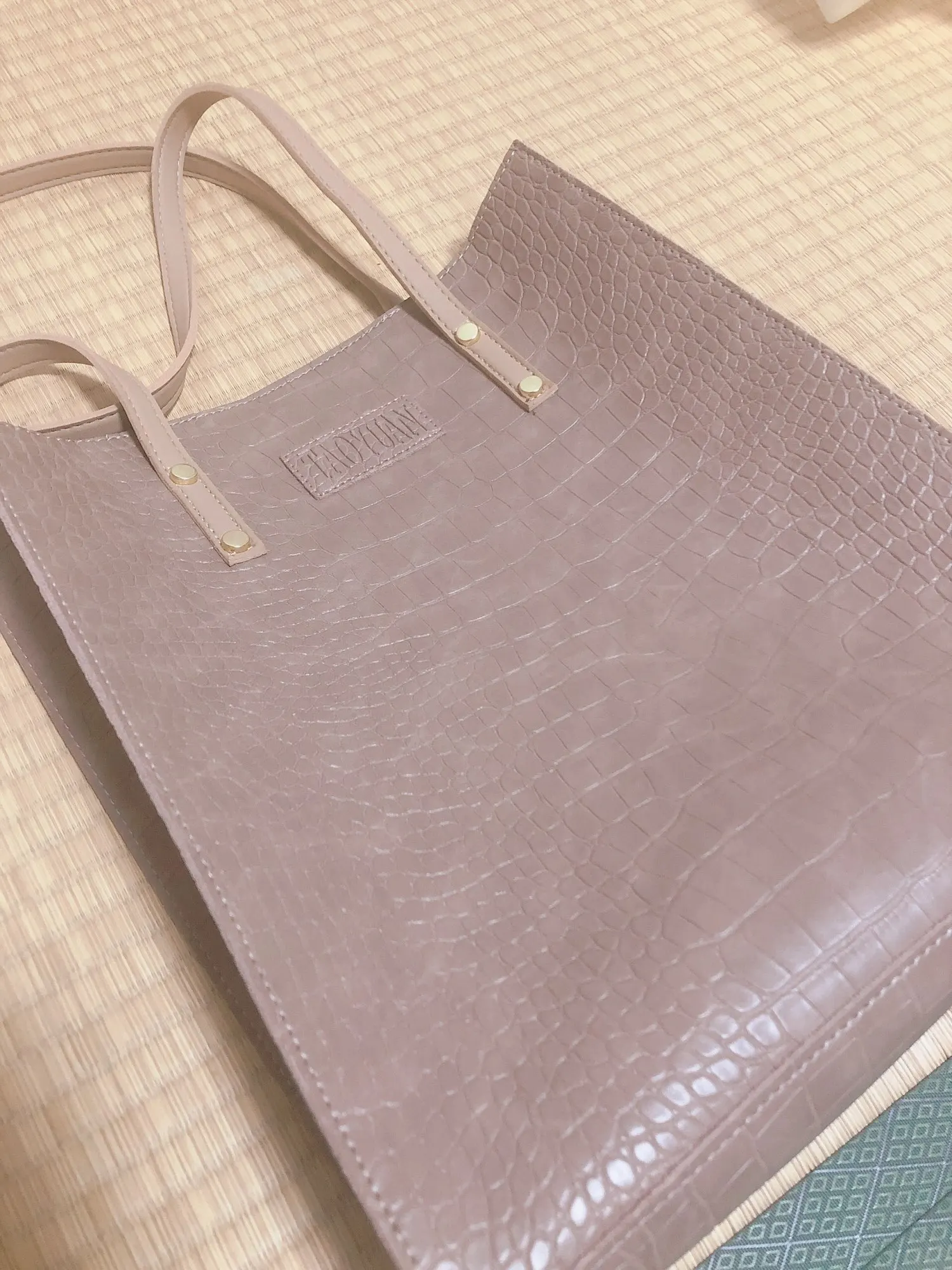 10かでとうちゃく はやい くさかったけどすうじかんほしたらきにならないていどになった なかにぽっけあります ぽっけのぬのにもけもけついててきたないからぶらしかけてとった えーよんふぁいるおさまります そざいやすっぽいけどたかみえする ほんとかすいとうとかおもいものたくさんいれたらひもちぎれそう たぶんたいきゅうせいはない いろはべーじゅというよりくすんだぴんく かわいい こわれたらまたちがういろかおうとおもいます