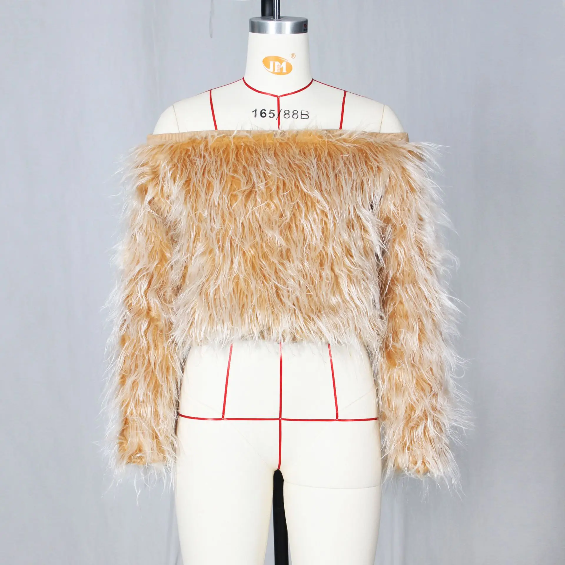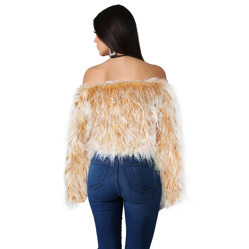 Топ женский зимний из искусственного меха, с открытыми плечами и воротником-лодочкой