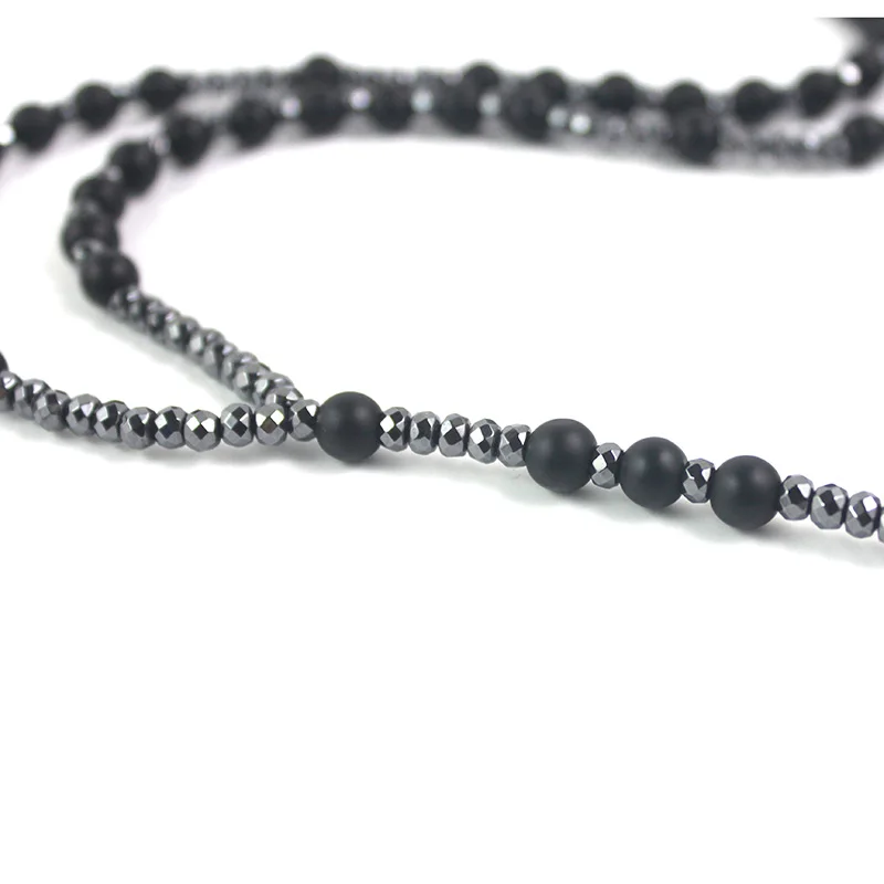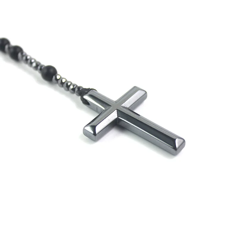 Новое поступление, бусины из матового черного камня с гематитовой гранью, подвеска в виде креста, ожерелье, мужские ювелирные изделия, Rosaray NSN013