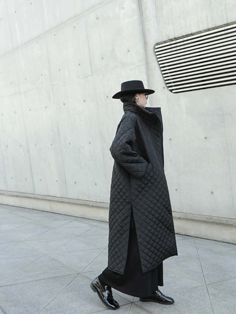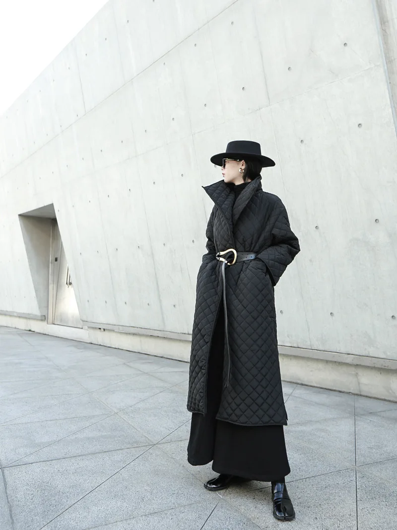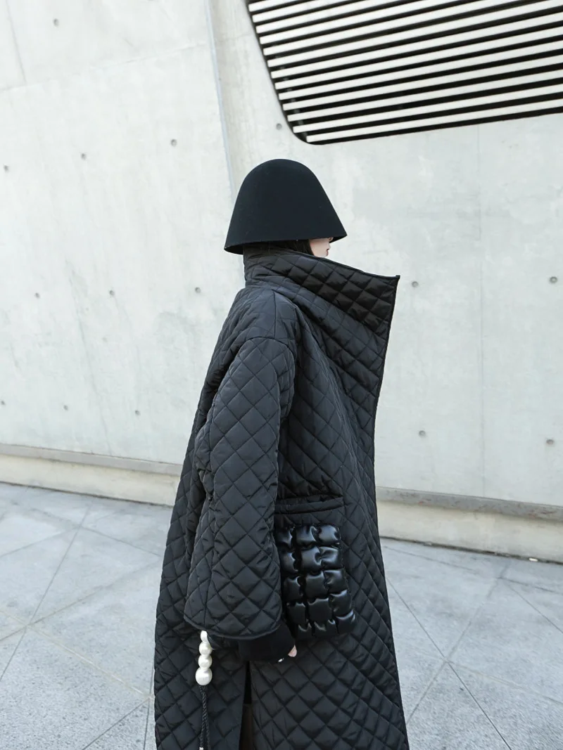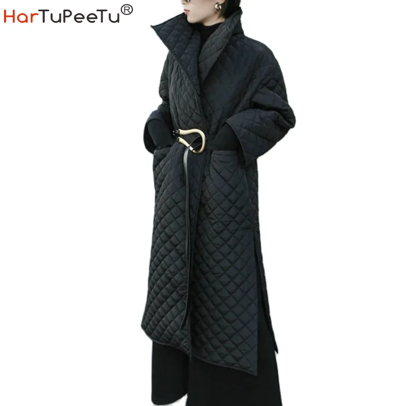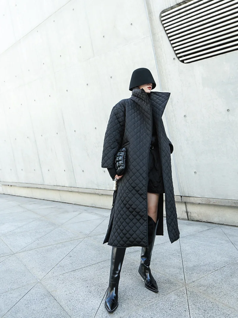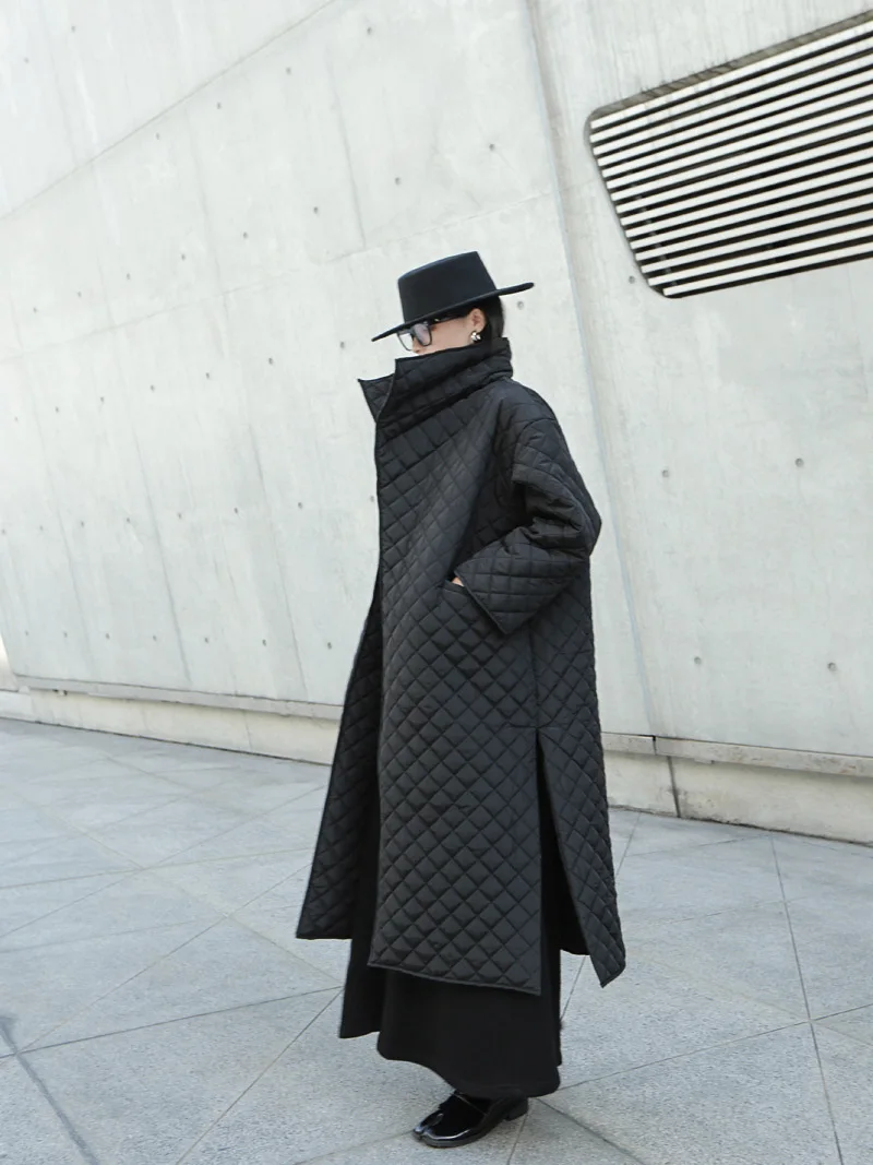 Женская Стеганая куртка, зимняя длинная парка, модное Черное Женское пальто с аргайлами, Женская парка с разрезом сбоку, длинная светильник Кая верхняя одежда, плащ