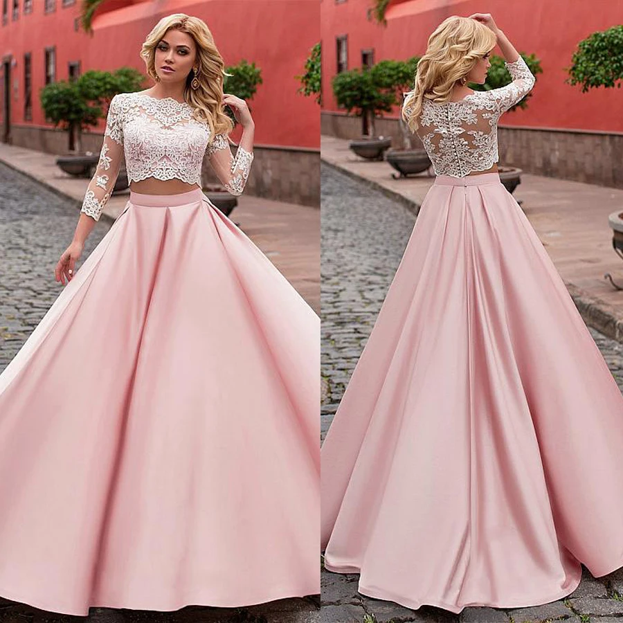 Кружевное и розовое атласное свадебное платье из двух предметов с рукавом 34
