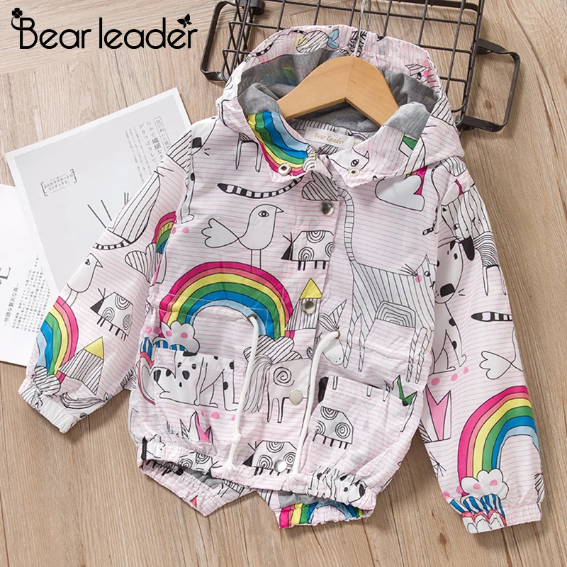 Bear Leaderпальто для девочек; Куртки; Новые осенние детские пальто; Куртка с рисунком; Детская верхняя одежда с капюшоном; Ветровка с граффити