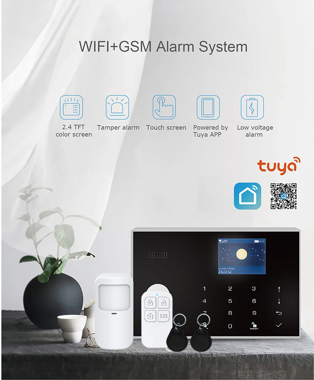 Умная домашняя сигнализация Tuya, Wi-Fi, GSM, 433 МГц, беспроводная охранная сигнализация, работает с приложением Alexa, Google, дистанционное управление