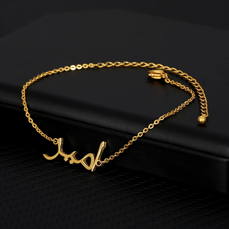 Женские браслеты с арабскими буквами на заказ, цепочка из нержавеющ...