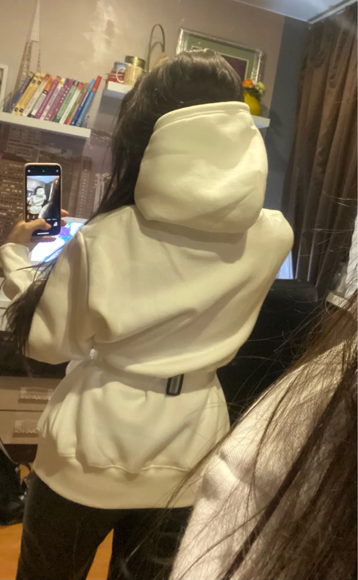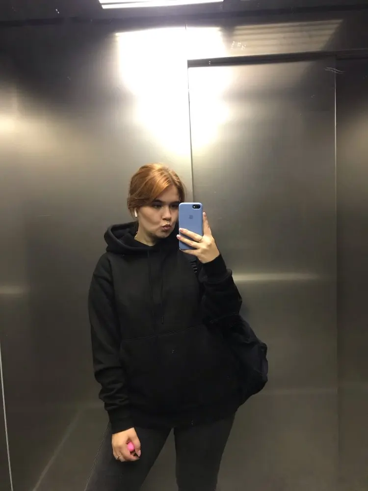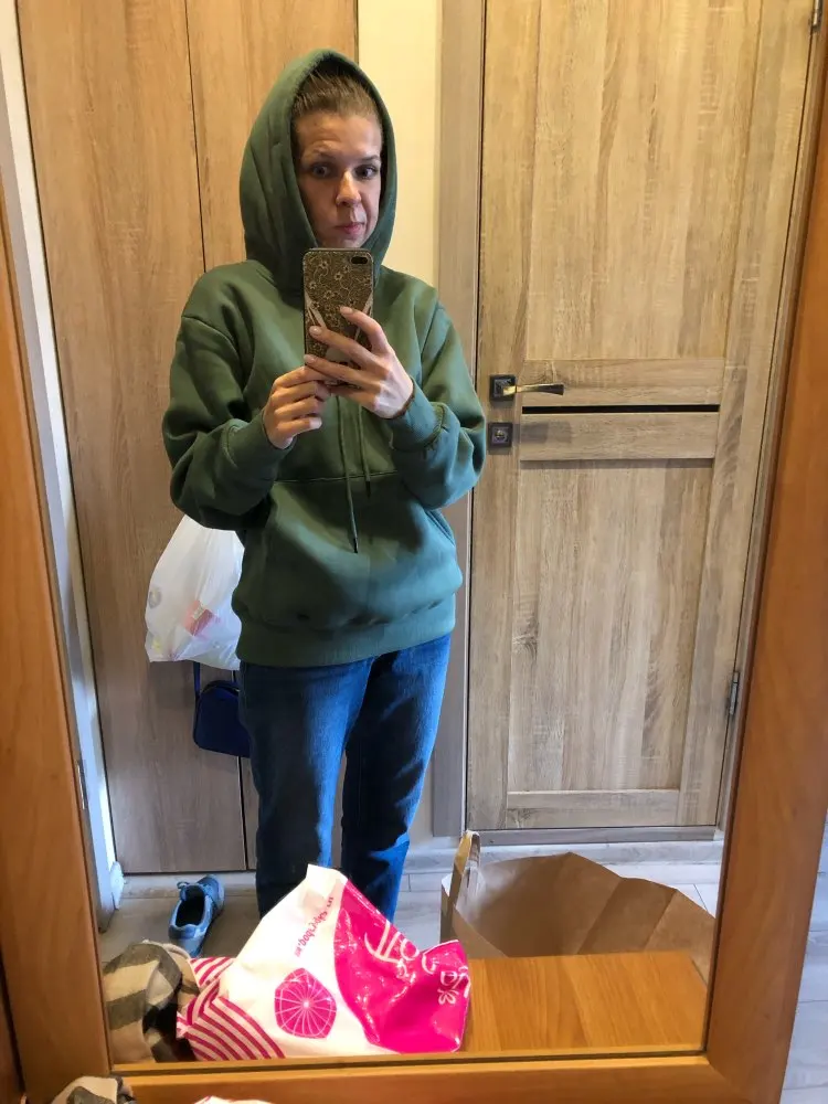 Супер худи. Очень приятный цвет. Аккуратно выполнено. Хорошо села на рост 176 см 96/74/96. Рукава отличной длины.