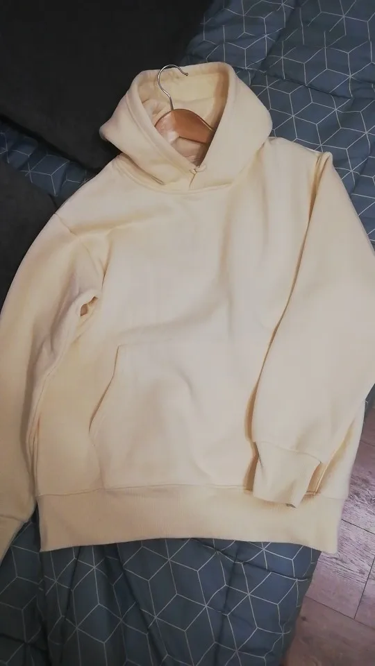 Качество отличное! Моё лучшее приобретение на Али. Материал плотный, точно не закатается, внутри мягкий флис, пока мерила стало жарко. Очень понравилась горловина на толстовке, не широкая, что для меня прекрасно. У продавца указано, что толстовка мужская, но думаю, что это не важно, поскольку смотриться отлично. На свой 44 русский размер заказала S, сидит прекрасно, не слишком оверсайз и достаточно свободно. Цвет априкот очень приятный. Довольна покупкой! Рекомендую к покупке, качество прекрасное. Дополню после фото.