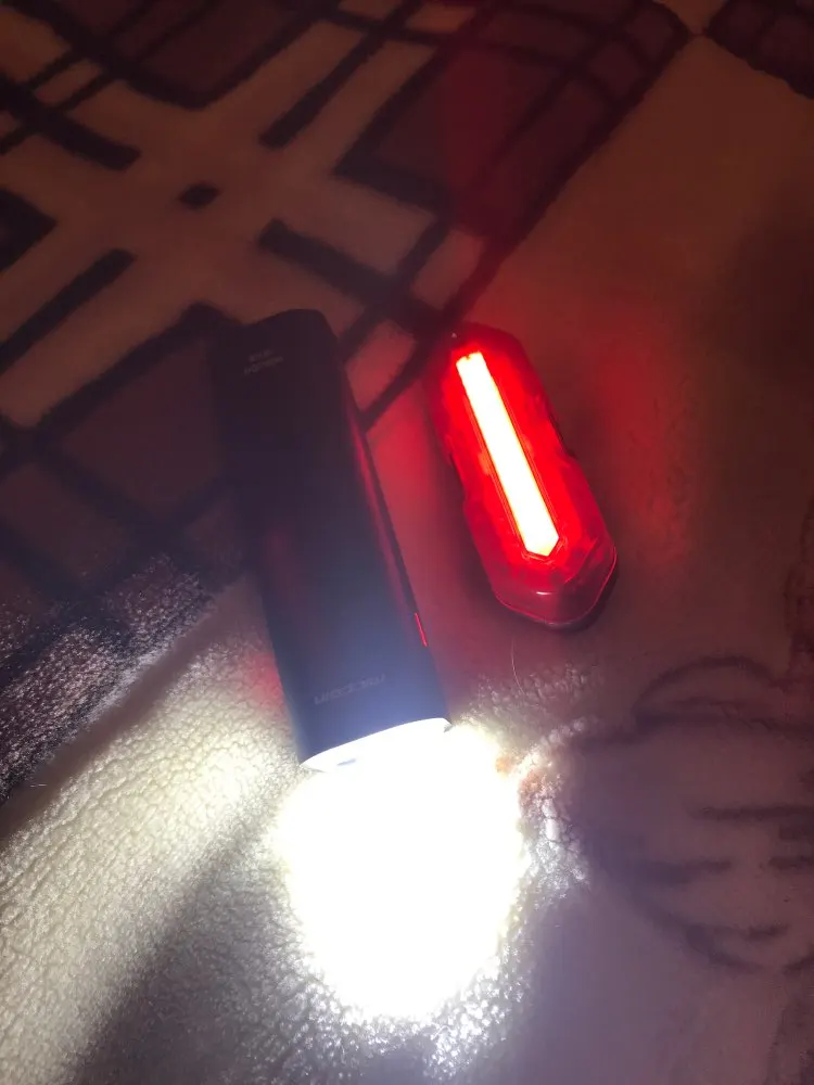 Передний фонарь светит достаточно ярко. Основные режимы в полную силу, в половину силы. Если долго подержать кнопку, то включается чередующимися интервалами стробоскоп, еще нажать - обычный стробоскоп. Светит заявленное количество времени с одной оговоркой. Когда заряда остается меньше 30-40% сам автоматически уменьшает яркость свечения раза в 2 на всех режимах. Так же задний фонарь. Задний по длительности светит раза в 2-3 дольше переднего.