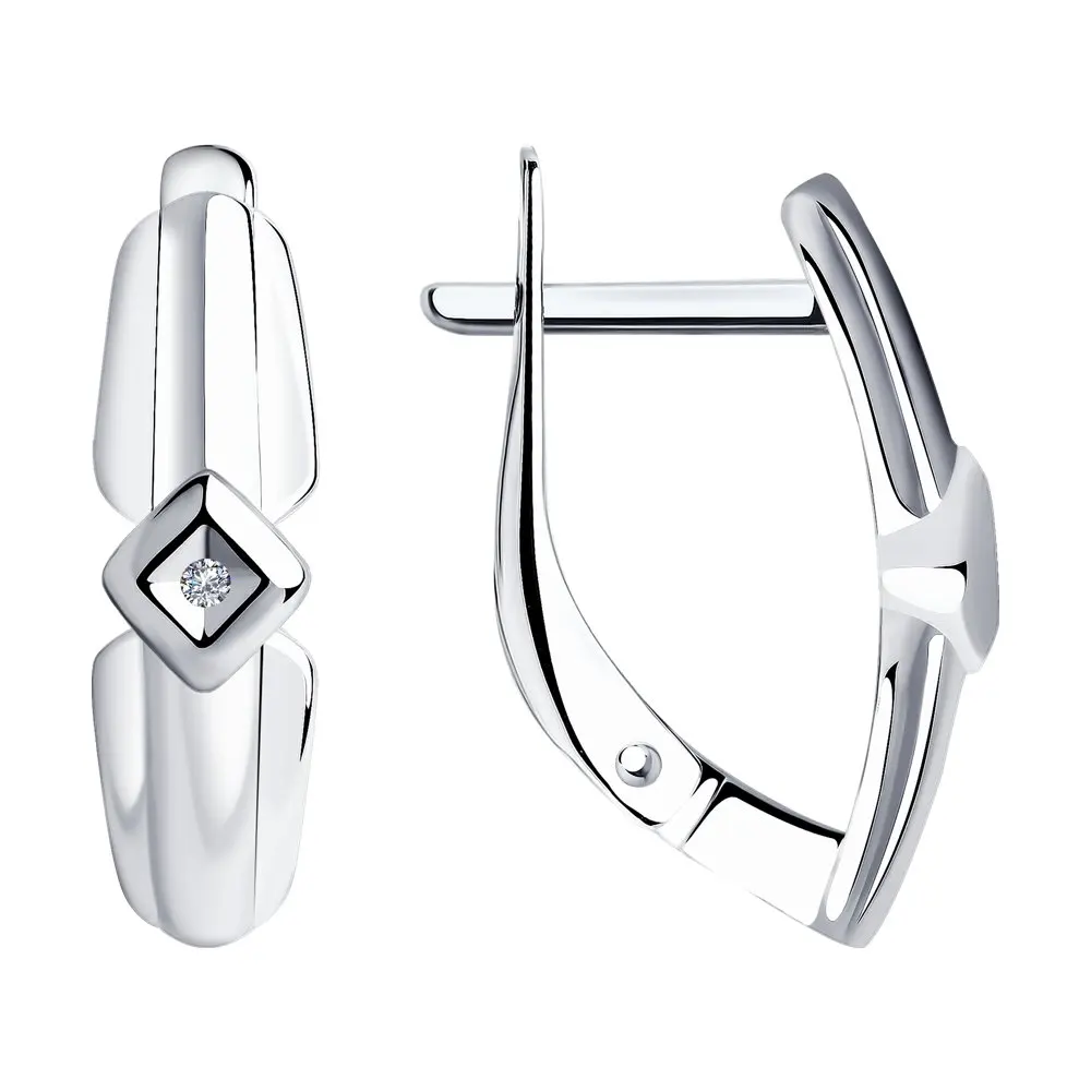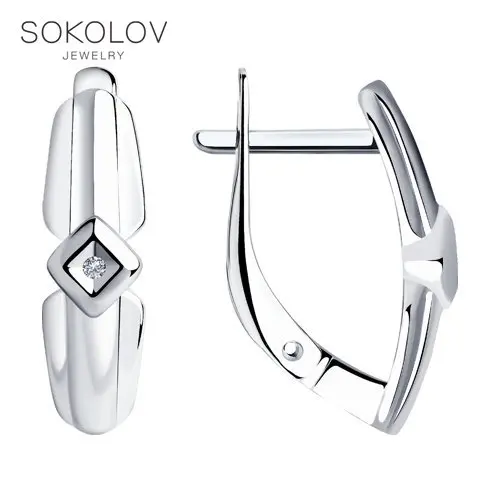 Серьги SOKOLOV из серебра с бриллиантамиКлассические серьги из серебра с бриллиантами – универсальное решение на каждый день. Элегантный дизайн, оптимальный размер, надёжный английский замок – три составляющие базового украшения, которое окажется уместным в любой ситуации. Объёмное фигурное основание и каст в виде ромба акцентируют внимание на сиянии бриллианта. Стилизуйте серьги с повседневными вещами или дополняйте ими вечерние наряды.