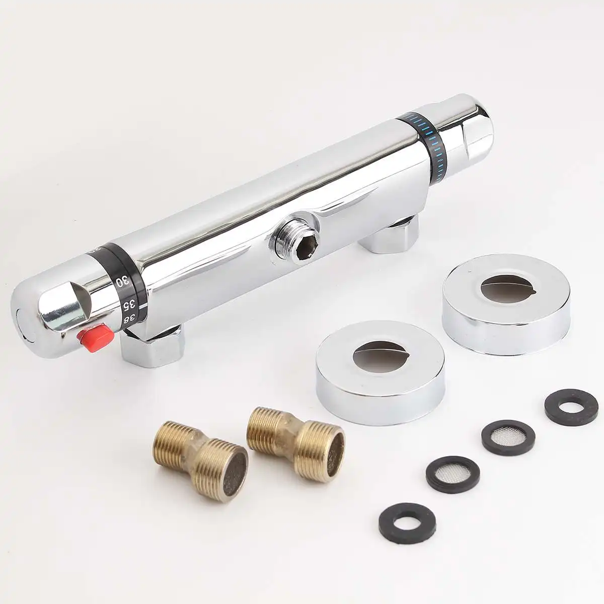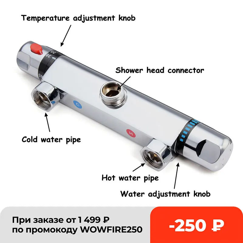Очень быстрая доставка с России 3 дня. Смеситель работает. С газовой колонкой работает. При включении других потребителей -температура не сильно скачет. выходная наружная резьба на кран/душ 3/4". у кого 1/2 берите переходник еще. В моем случае неудобно регулировать температуру. Не знаю поворачивается ли термостат или нет. спрошу потом у продавца. по ощущениям немного привирает с температурой, но пирометр в пути - пока не проверил. В целом - покупкой доволен.