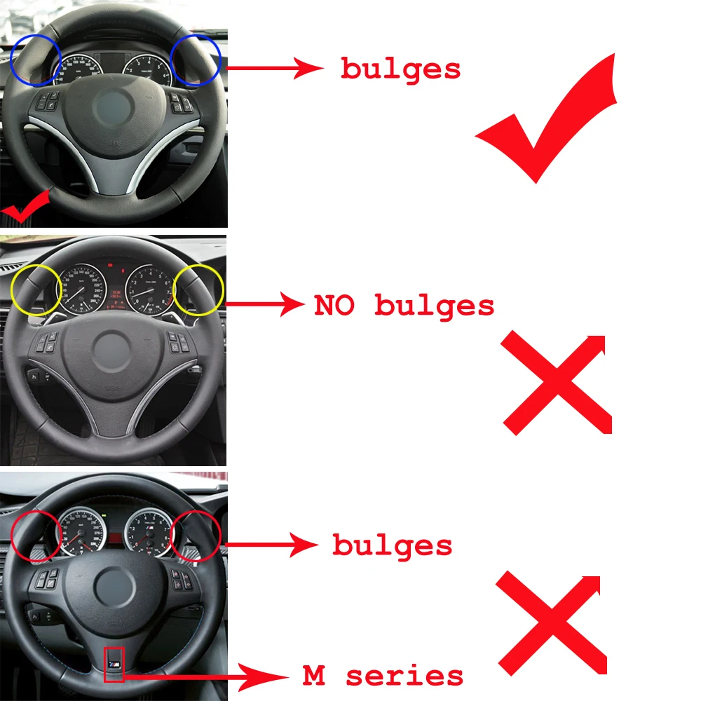 Пожалуйста, убедитесь, что у вас рулевое колесо совпадает с изображением продукта, так как это чехол для рулевого колеса, подходящий по индивидуальному заказу, подходит только для определенных автомобилей. Если есть какая-либо разница, он не подойдет!