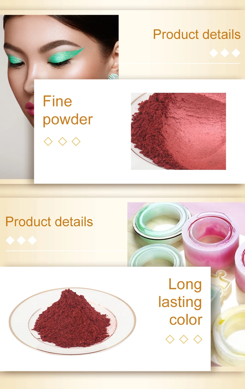 Применение:Краска и покрытие, чернила, пластик, кожа, печать, бумага, строительные материалы, украшения, металл, деревянная мебель, керамика, роспись стен, ручная роспись DIY, граффити, перламутровая краска, велосипедная краска, железная краска, ремонтная жемчужная кожа, игрушечная краска, Модифицированная Автомобильная живопись, ремесла, косметика, Тени для век, блеск для губ, лак для ногтей.