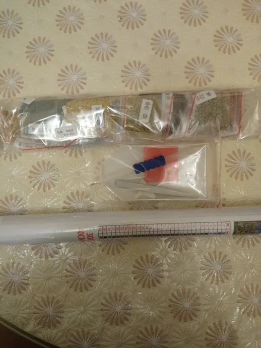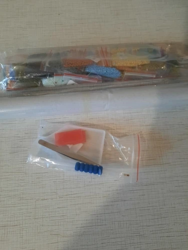 Доставка моментальная, десяти дней не прошло. Упаковано отлично в дутую трубку и пакет, есть малюсенькие складки по краям, но это ерунда. Поспешила, выкинула упаковку, поэтому на фото ее нет. Вместе с картиной положили и щипчики и спец. ручку с насадками. Очень довольна выполнением заказа. Как только соберем картину, дополню отзыв.