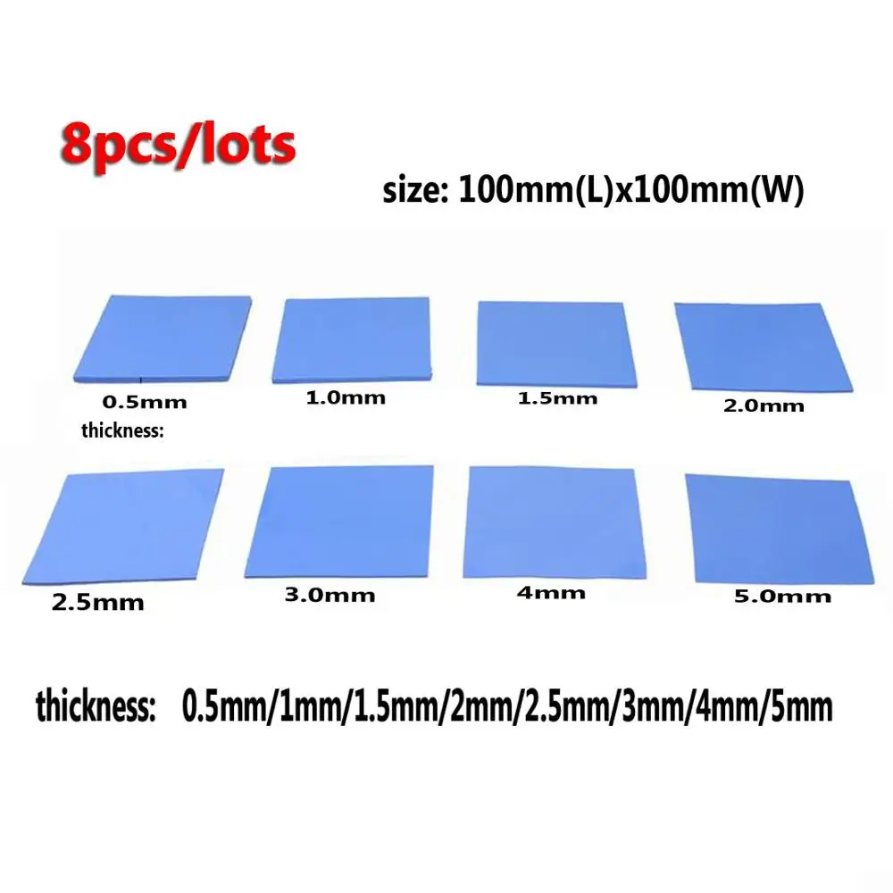 Gdstime Проводящий силикон, 8 шт., 100x100 мм 0,5 мм 1 мм 1,5 мм 2 мм 2,5 мм 3 мм 4 мм 5 мм для процессора GPU IC Радиатор охлаждения