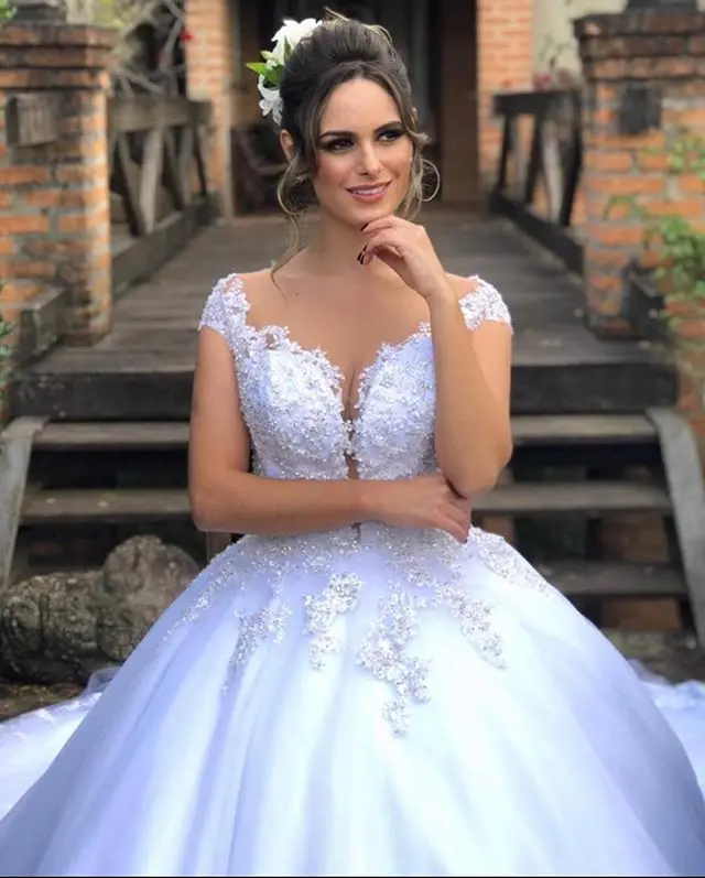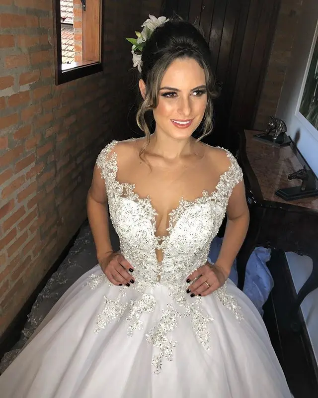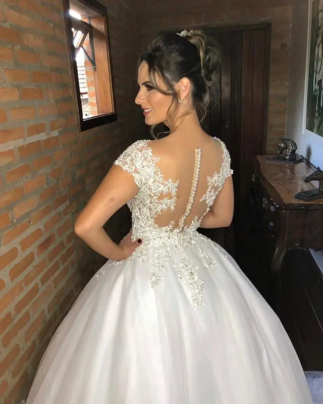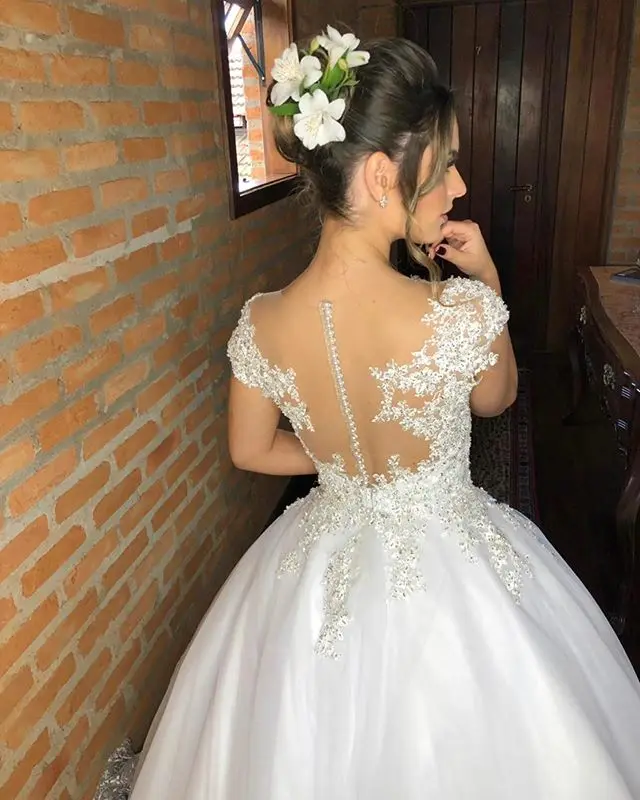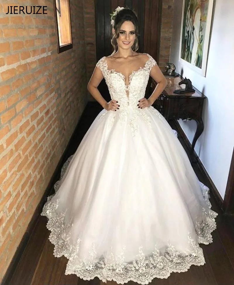 JIERUIZE Роскошные свадебные платья из жемчуга 2021 кнопки спиной Кружева аппликация бисером свадебные платья