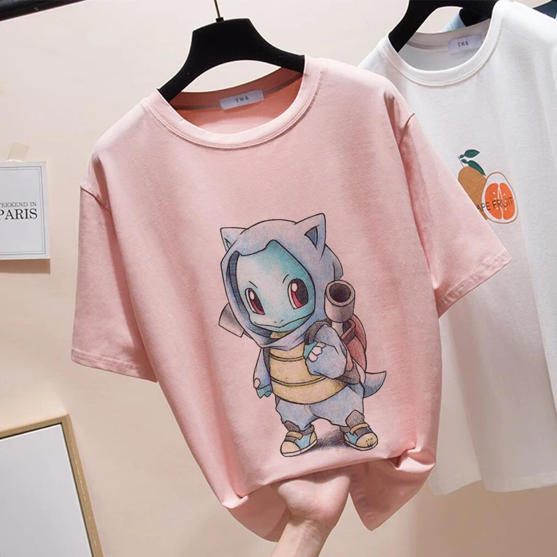Новинка 2019, эксклюзивные летние футболки Pokemo, женская футболка в Корейском стиле, женские топы в стиле Харадзюку с круглым вырезом, милый топ с принтом Kawaii
