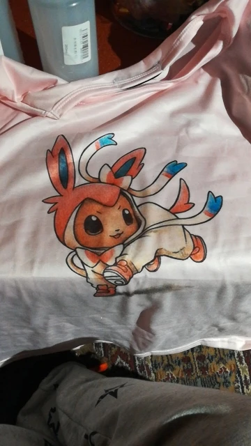 Ehh принт немного пушистый и не самое лучшее качество, но это неплохо. Также ткань приятная, Очень воздушная, как спортивная рубашка