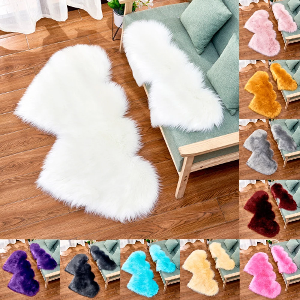 Двойное сердце мех Искусственная овчина мохнатый ковер для гостиной...