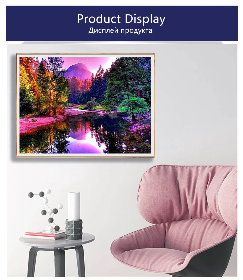 Алмазная живопись сделай сам с лесом, полноразмерная Вышивка крести...