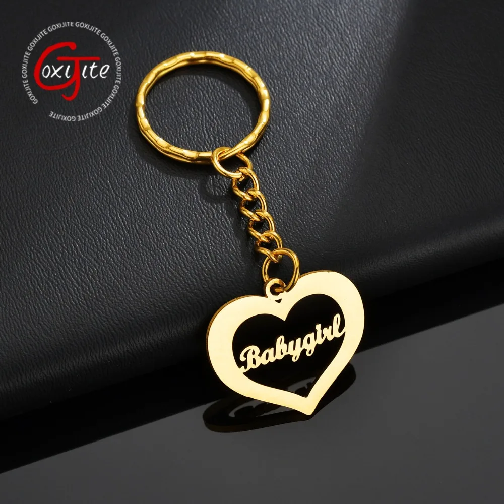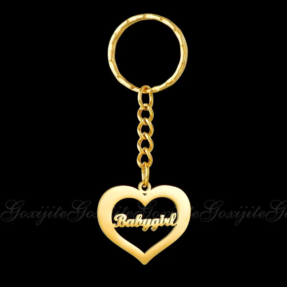 Goxijite ручной работы именной брелок в форме сердца для женщин брелок из нержавеющей стали в форме Золотого сердца