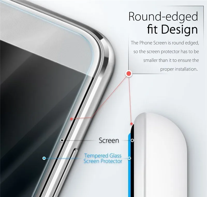 Примечание: Потому что край телефона Согнут. Он разработан, чтобы быть меньше, чем фактическая Передняя пластина телефона