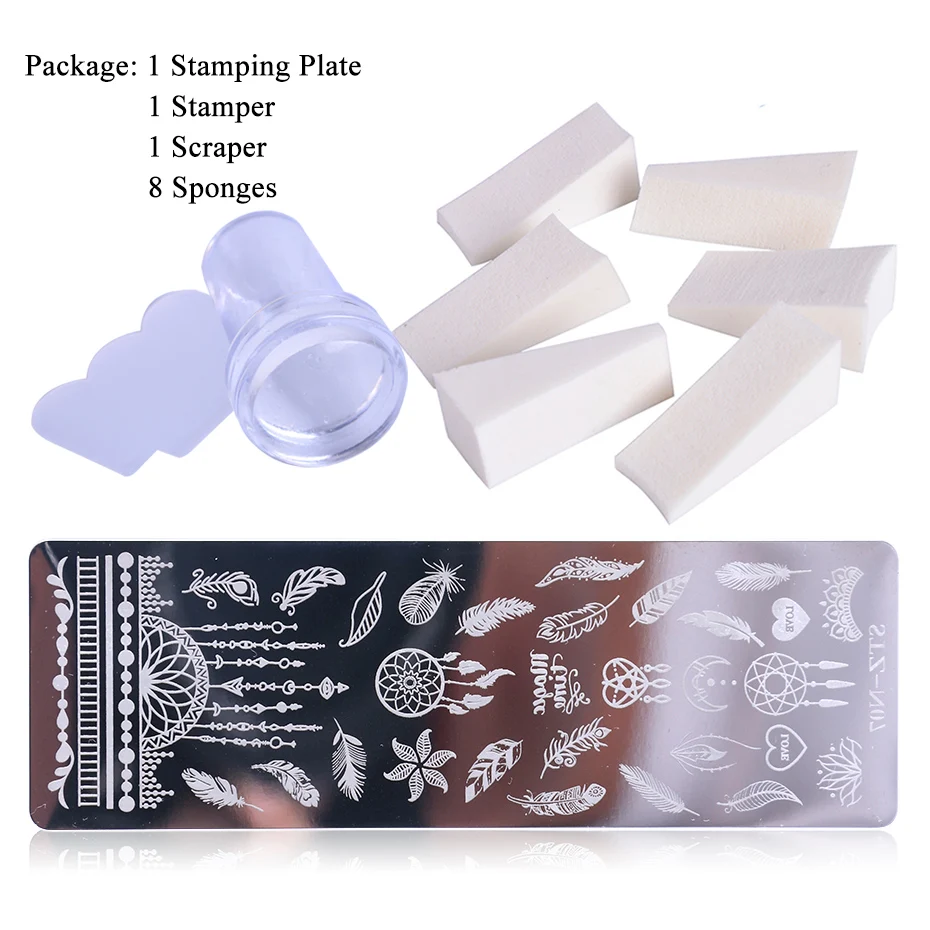 1 Набор штамповочных тарелок для ногтей, скребок для стемпинга, лист, роза, снежинки, шаблоны штампов для дизайна ногтей, губка, Рождественский маникюрный TRSTZN01-12-2