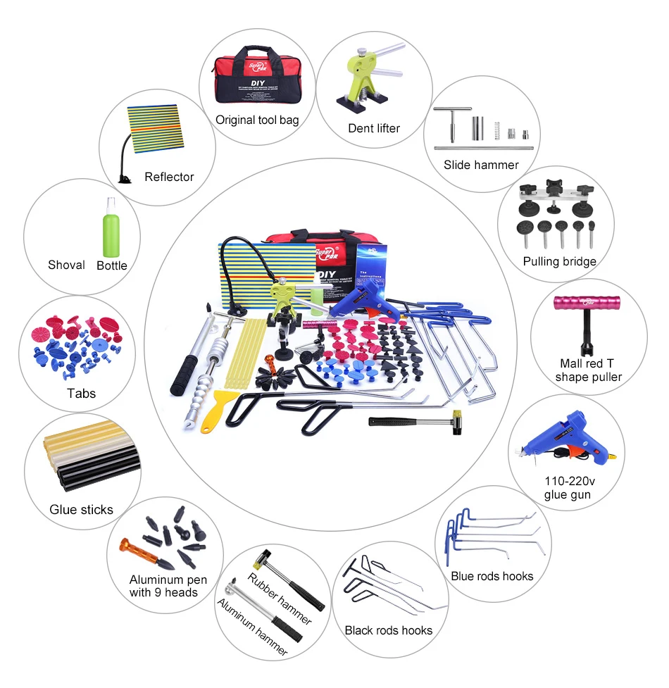 PDR удаление вмятин набор инструментов безболезненный вмятин ремонт автомобиля вмятин гаражные инструменты ремонт вмятин из нержавеющей стали Толкатель лом Обратный комплект молотков аксессуары