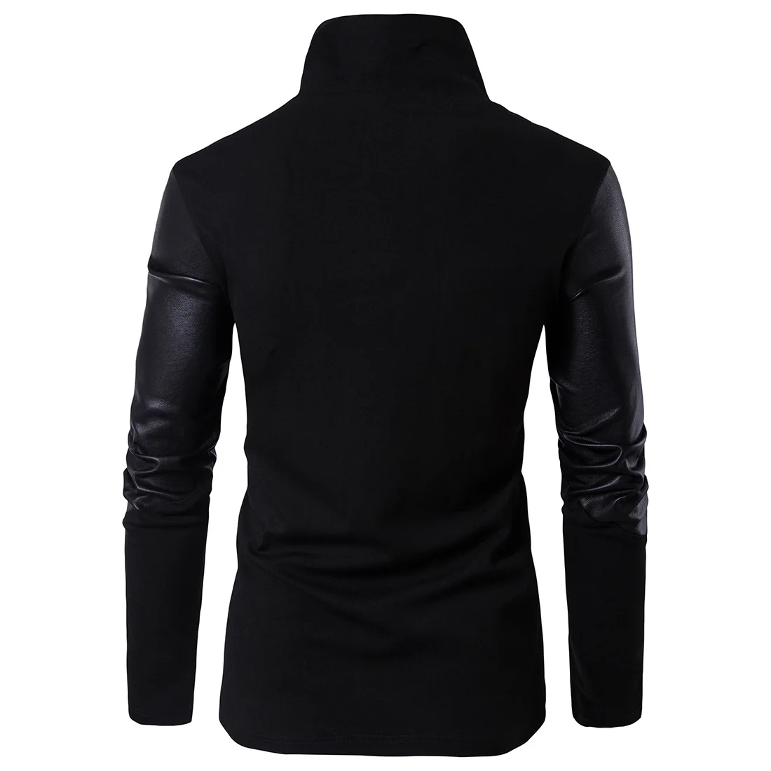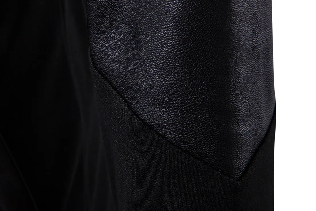 Модное Черное Кожаное куртки с высоким воротом в стиле пэчворк, Мужское пальто на весну и осень, мужское приталенное пальто в стиле панк, Большие европейские размеры