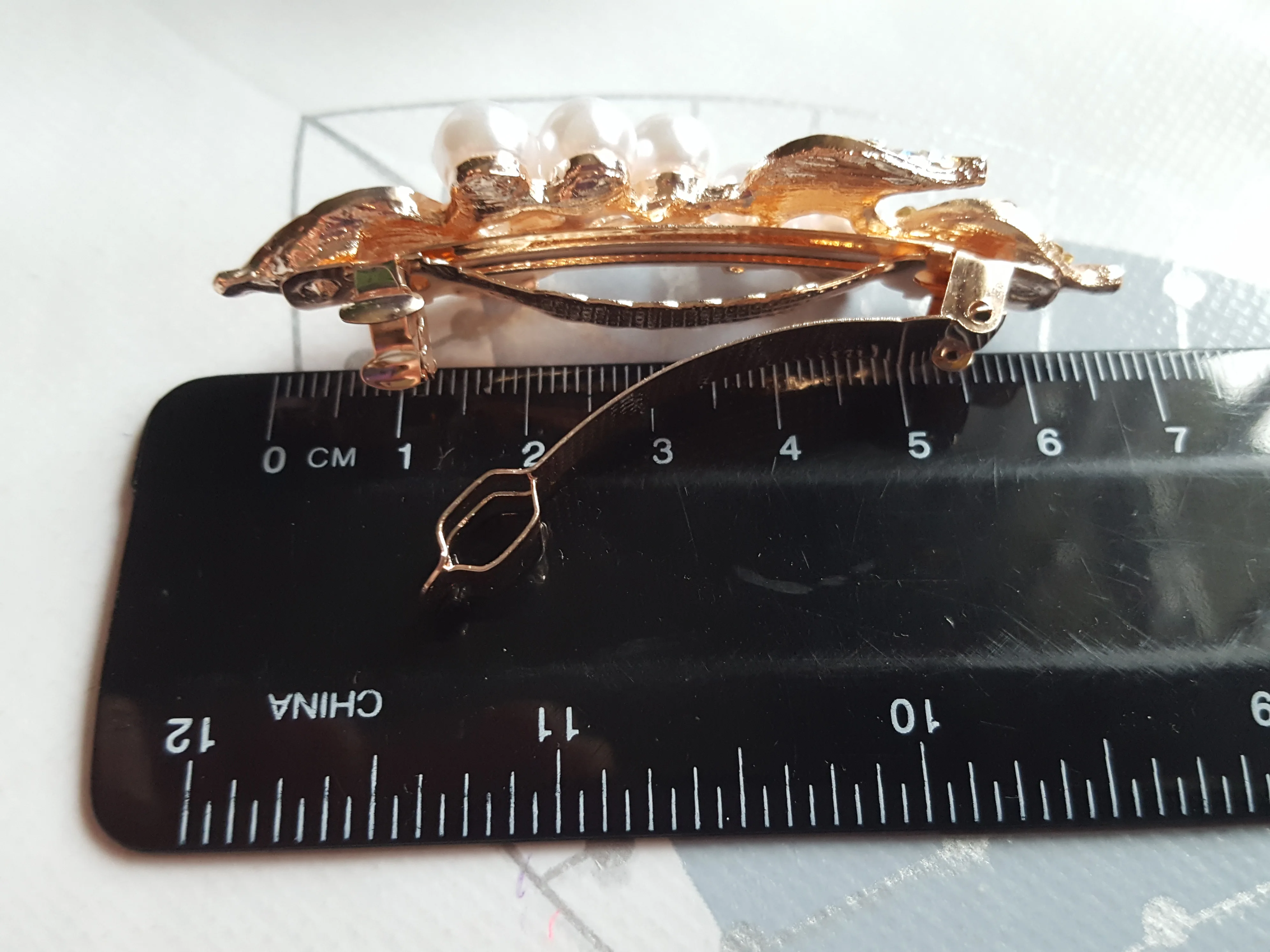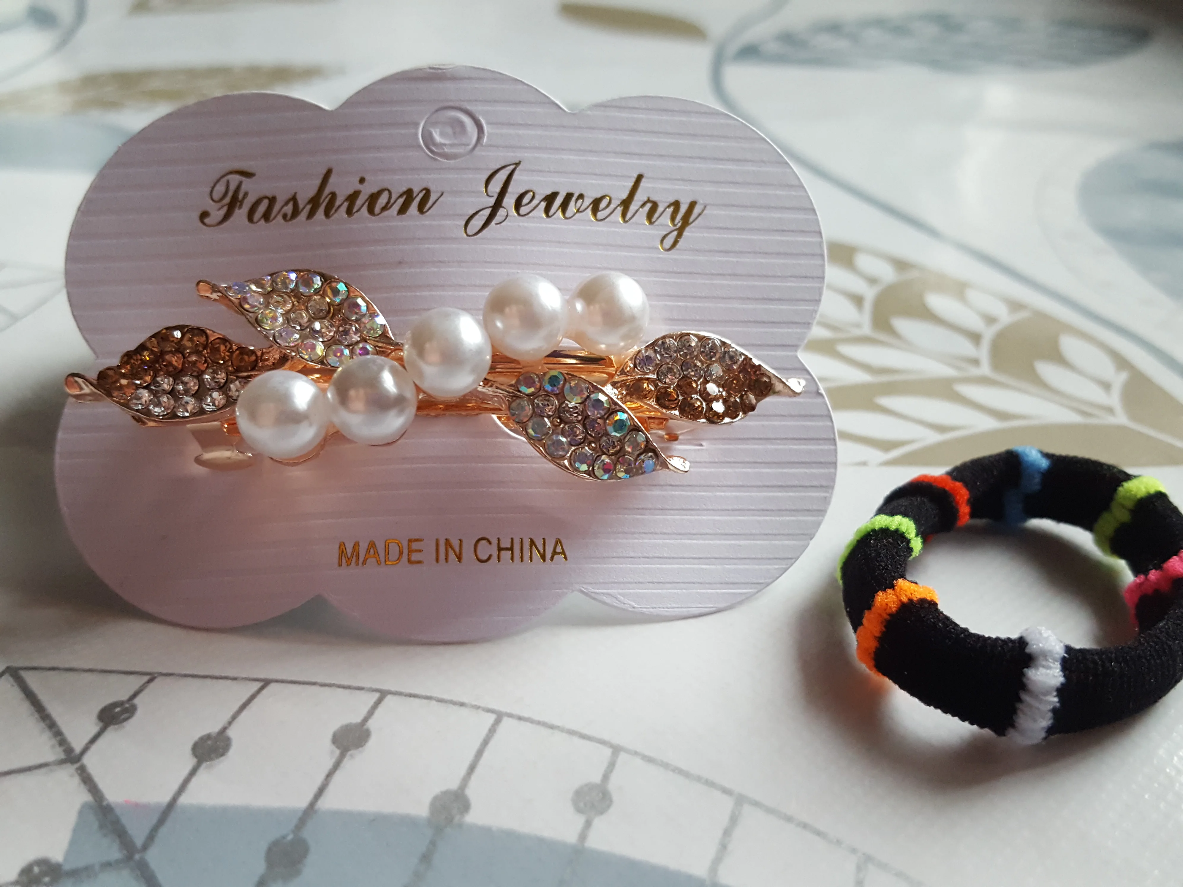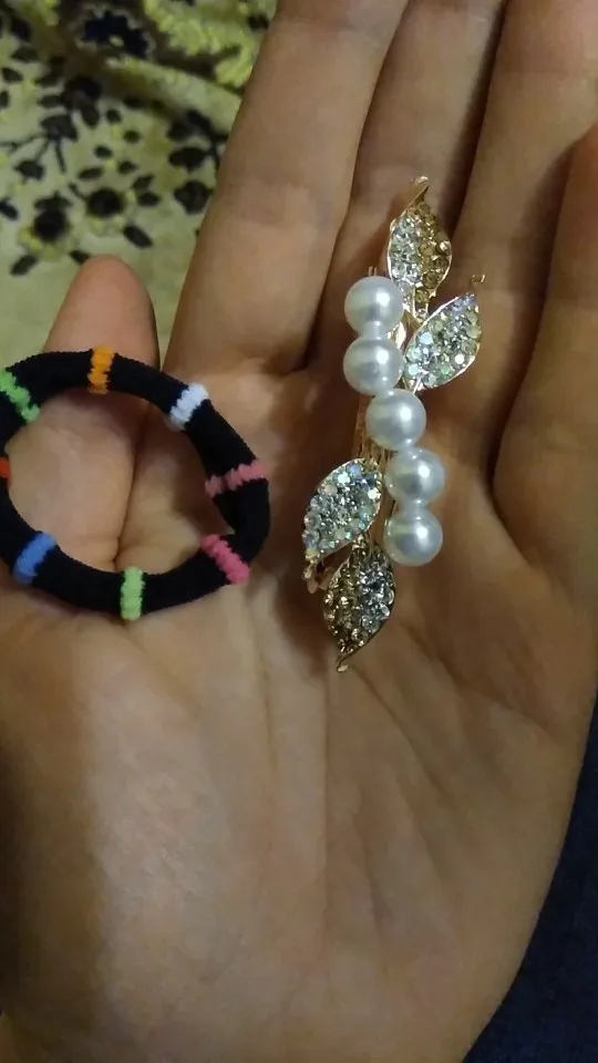 Красивая заколка для волос, красиво сделанная, выглядит крепкой. Не подходит для полного хвоста, но хорошо прикрепляет небольшое количество ворсинок на спине. Очень доволен. Также продавец добавляет в подарок резиновую ленту для волос.