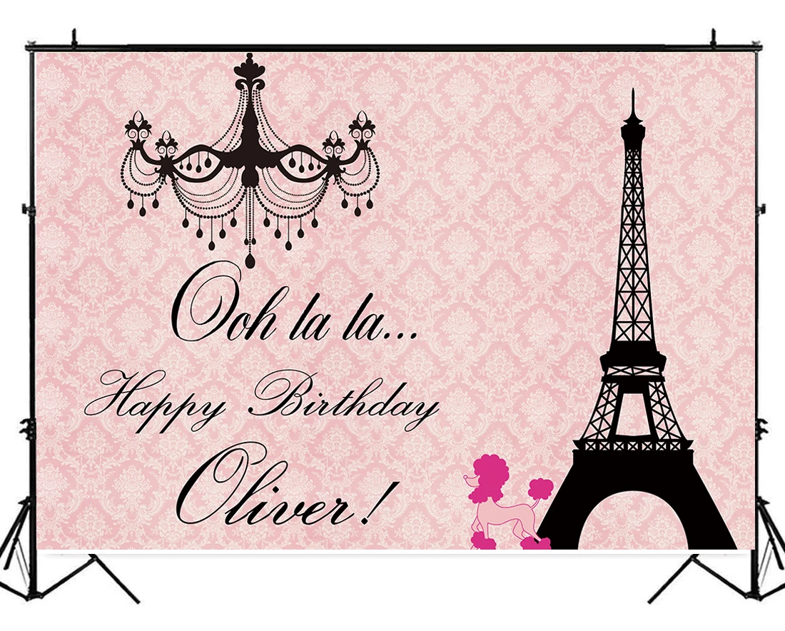 Тематический фон для дня рождения Парижа, Эйфелева башня, розовый дамасский фон, баннер, плакат на заказ, конфеты, стол, десерт