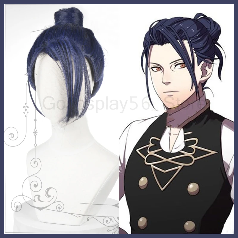Огненная эмблема ThreeHouses парик Феликс косплей волос синий пучок темно-синий хвост прямые челки красота советы Хэллоуин ролевые игры
