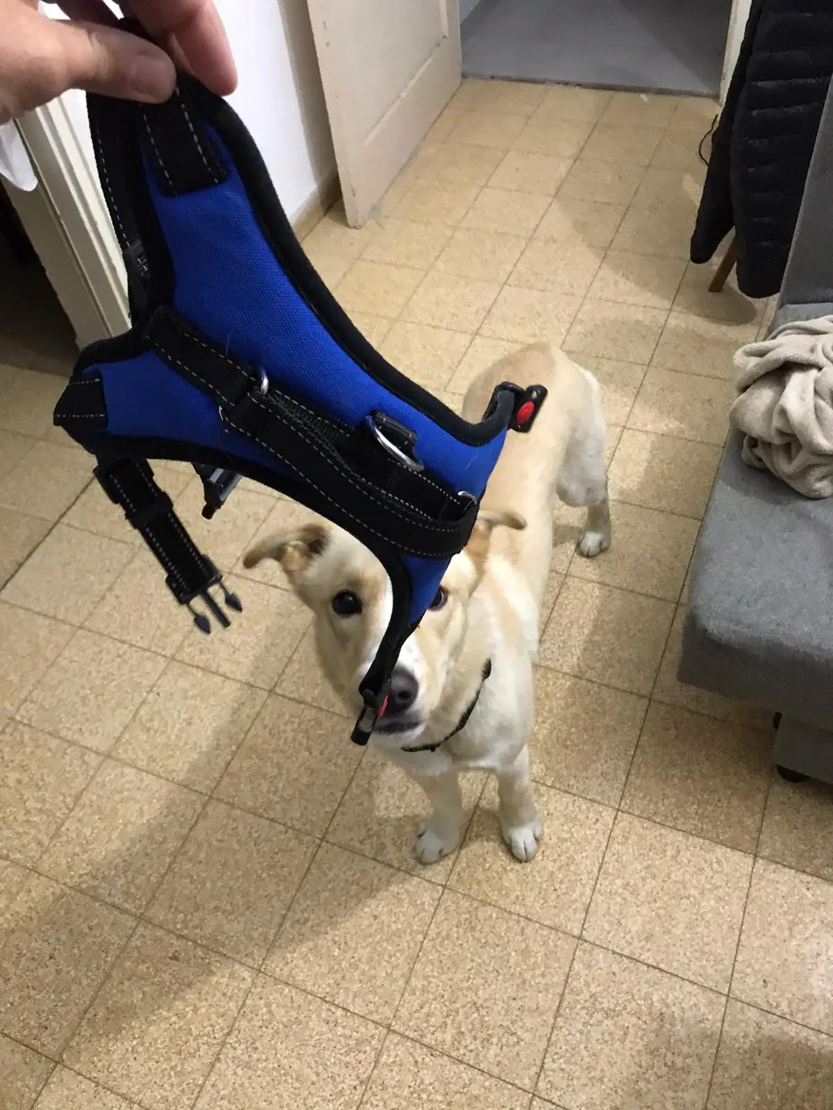 Большевата, но мы вязли на вырост, ещё щенок 4 месяца , джек Рассел , если что можно ушить, так прикольная, спасибо )