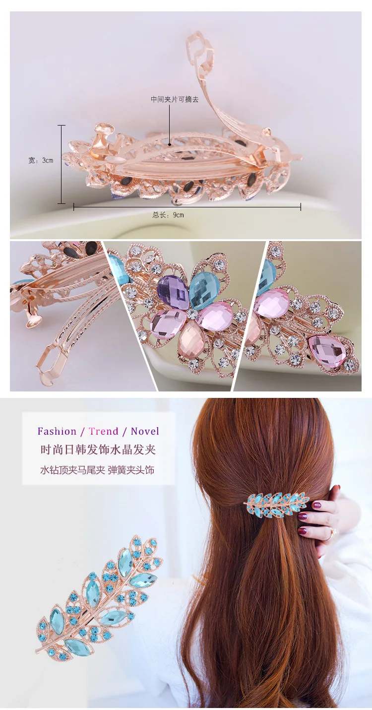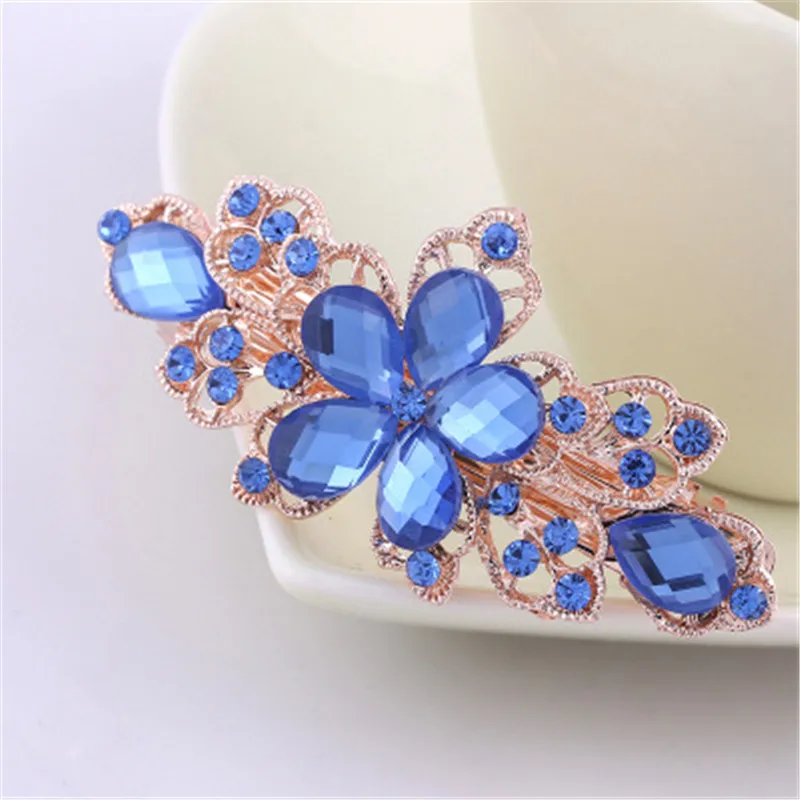 Заколка для волос, повседневная, в европейском и американском стиле, цветок розы со стразами