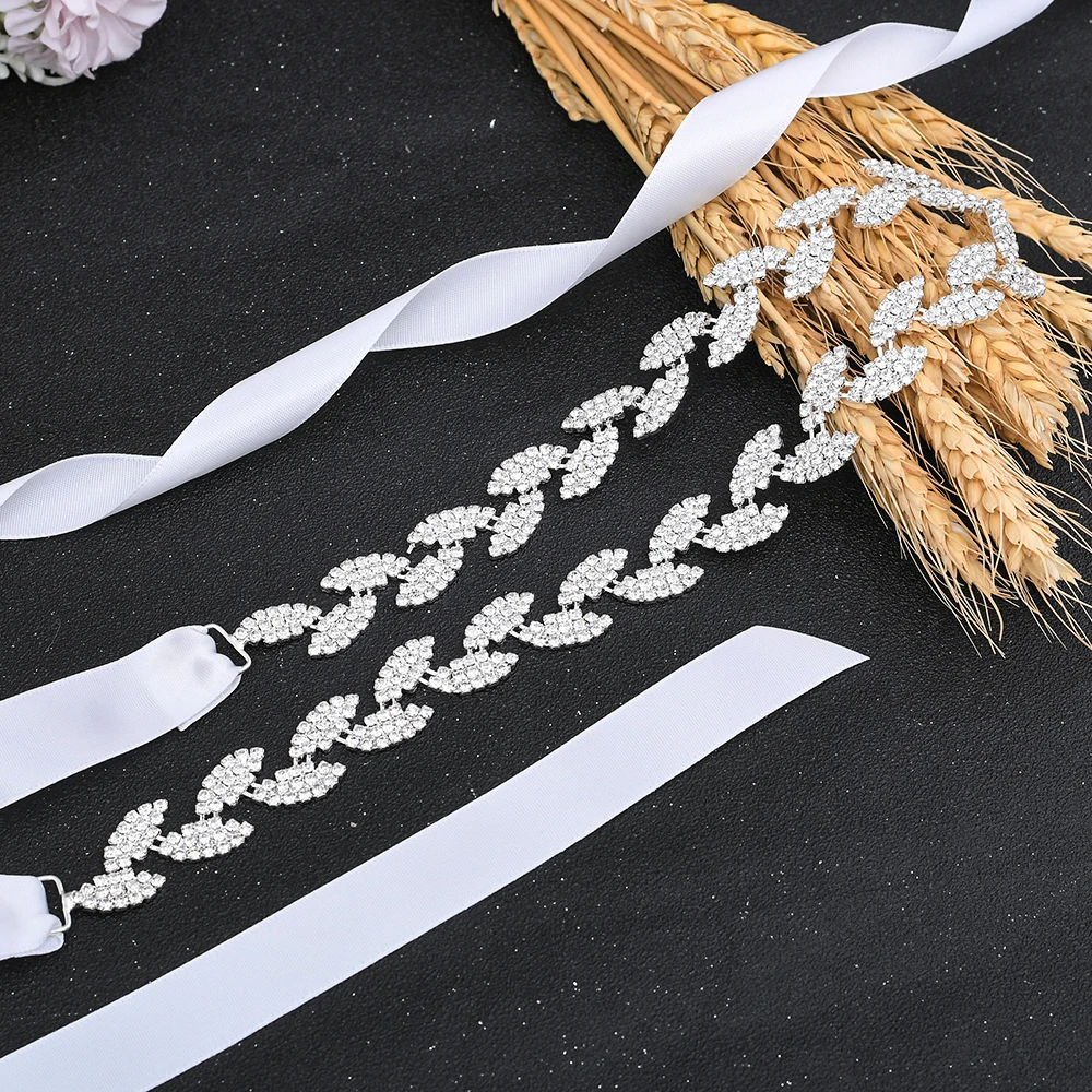 Пояс с серебряными листьями Женский, свадебный пояс с серебряными стразами, аксессуары для свадебного платья, пояса для невесты