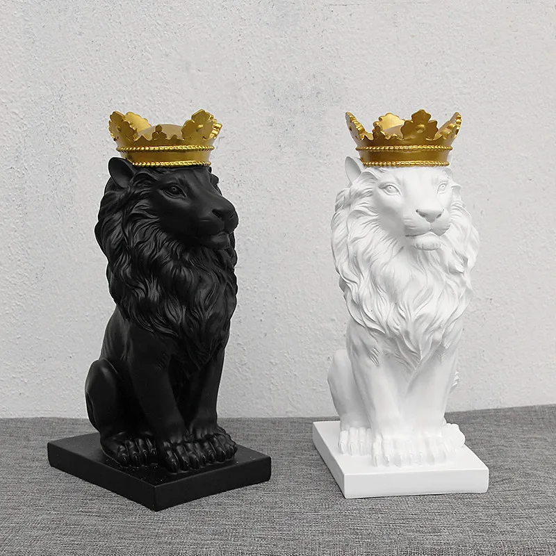 Скандинавская креативная статуя в виде короны и Льва, украшение из смолы для дома, ремесла, талисман, современная настольная статуэтка, скульптура, художественный подарок