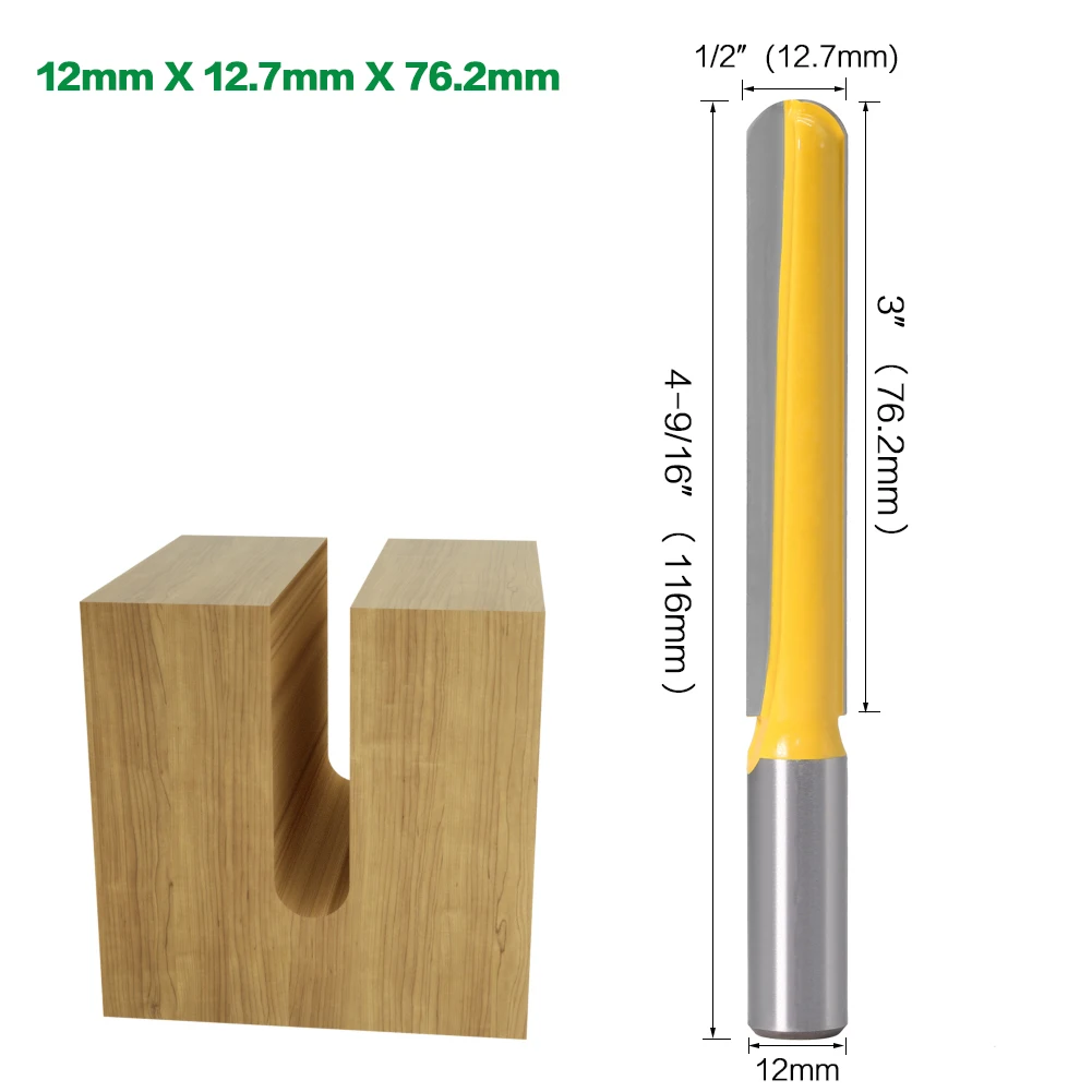 Концевая фреза, твердосплавный инструмент с хвостовиком 12 мм, 12 дюйма, с длинным лезвием, круглой насадкой, для работ по дереву