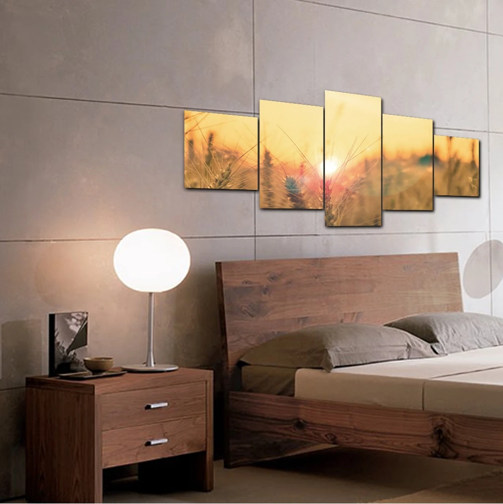 Laeacco Wheat In The Sunse Canvas 5 панелей классические голубые небеса настенные художественные плакаты и принты украшение для дома гостиной ванной комнаты