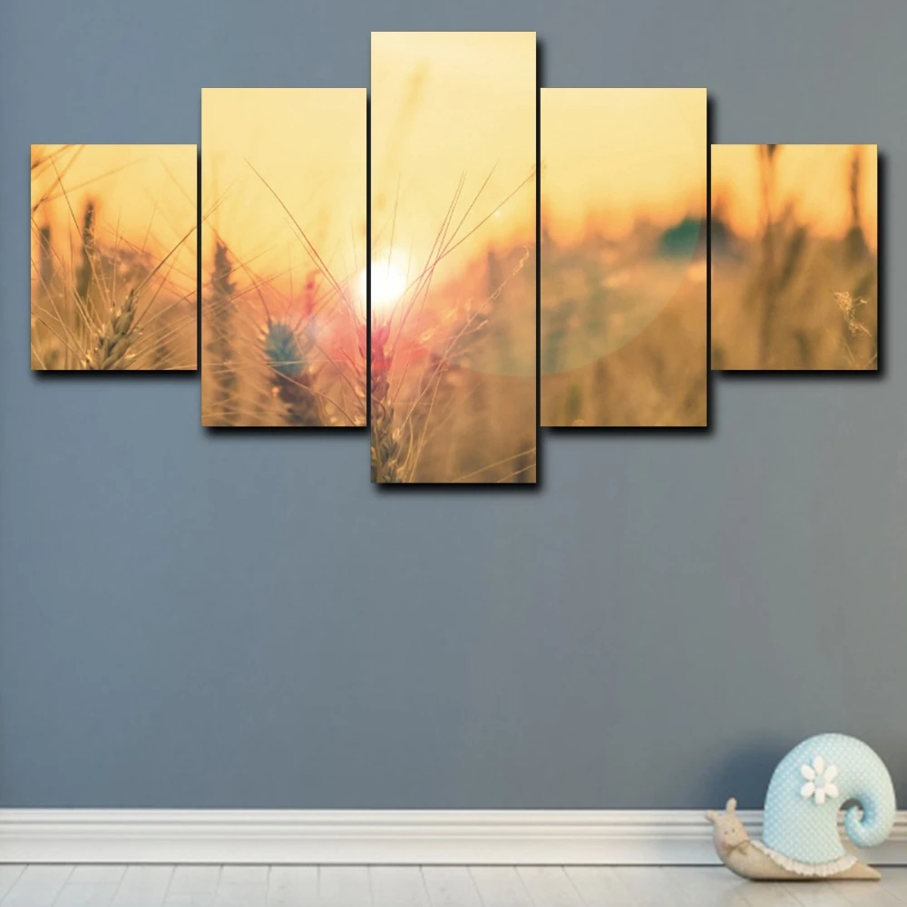Laeacco пшеницы в Sunse Холст 5 Панель классического синего неба настенные художественные плакаты и принты дома Гостиная Ванная комната украшения