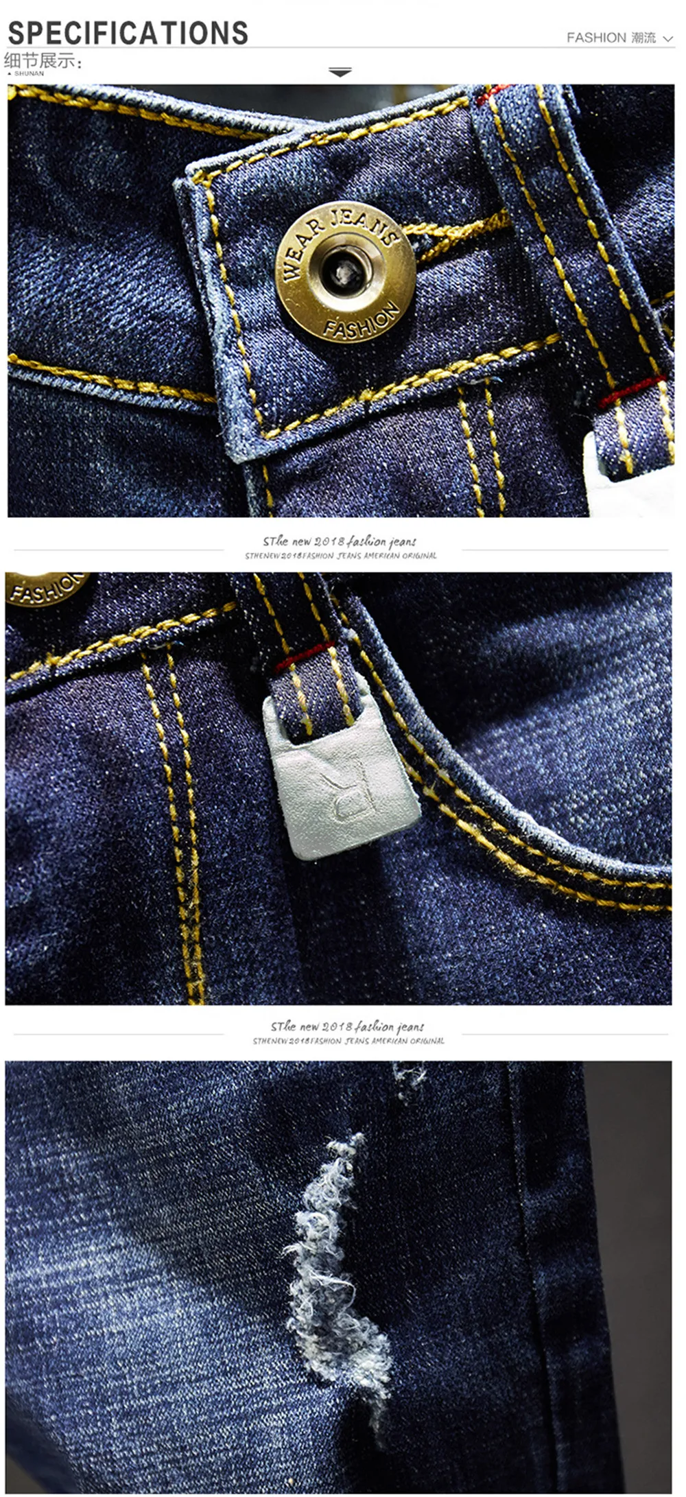 Джинсовые джинсы для мужчин с рваными Середины stetched длинные штаны Облегающие повседневные мужские джинсы