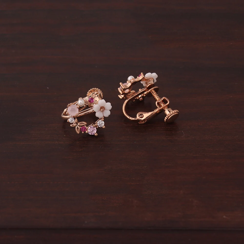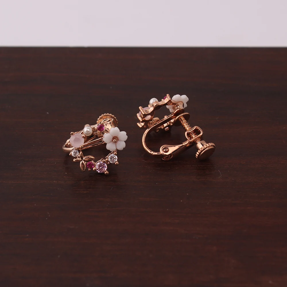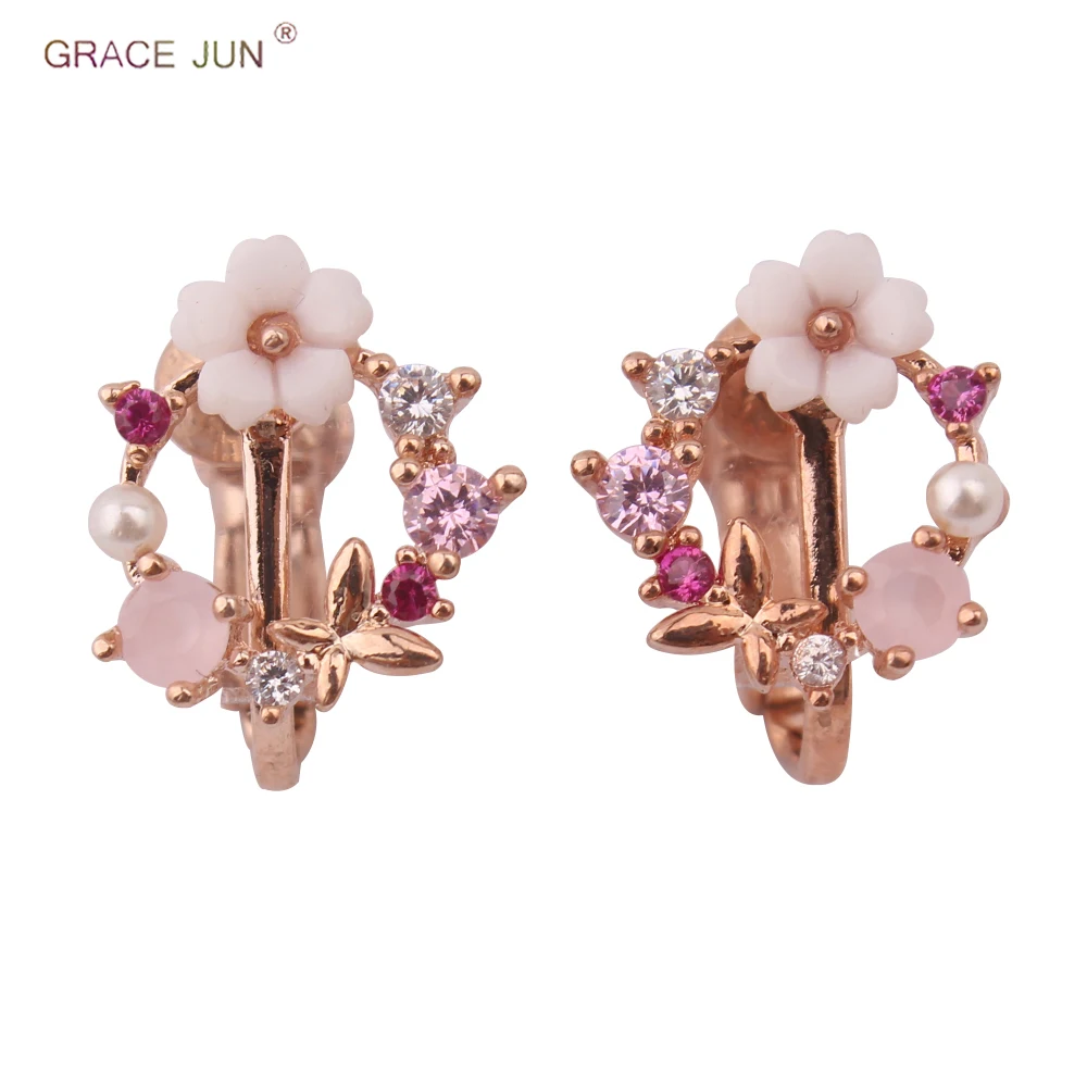 Серьги-клипсы GRACE JUN, маленькие круглые серьги-гвоздики с цветком и бабочкой, ювелирные украшения для свадебной вечеринки Размер: около 1,0 см * 1,1 см/0,393 дюйма * 0,43 дюйма