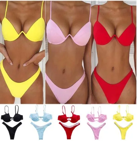 Сексуальное бикини 2022 женский летний однотонный купальник женский...