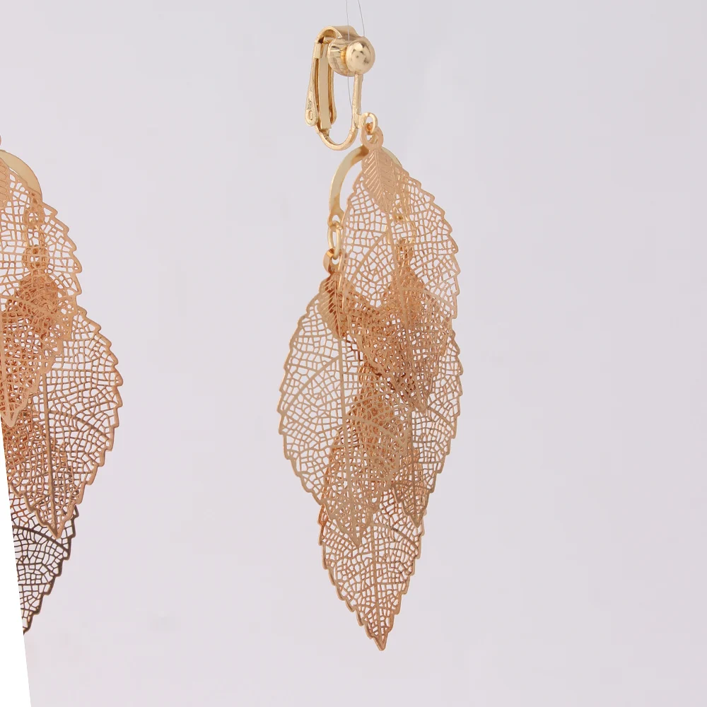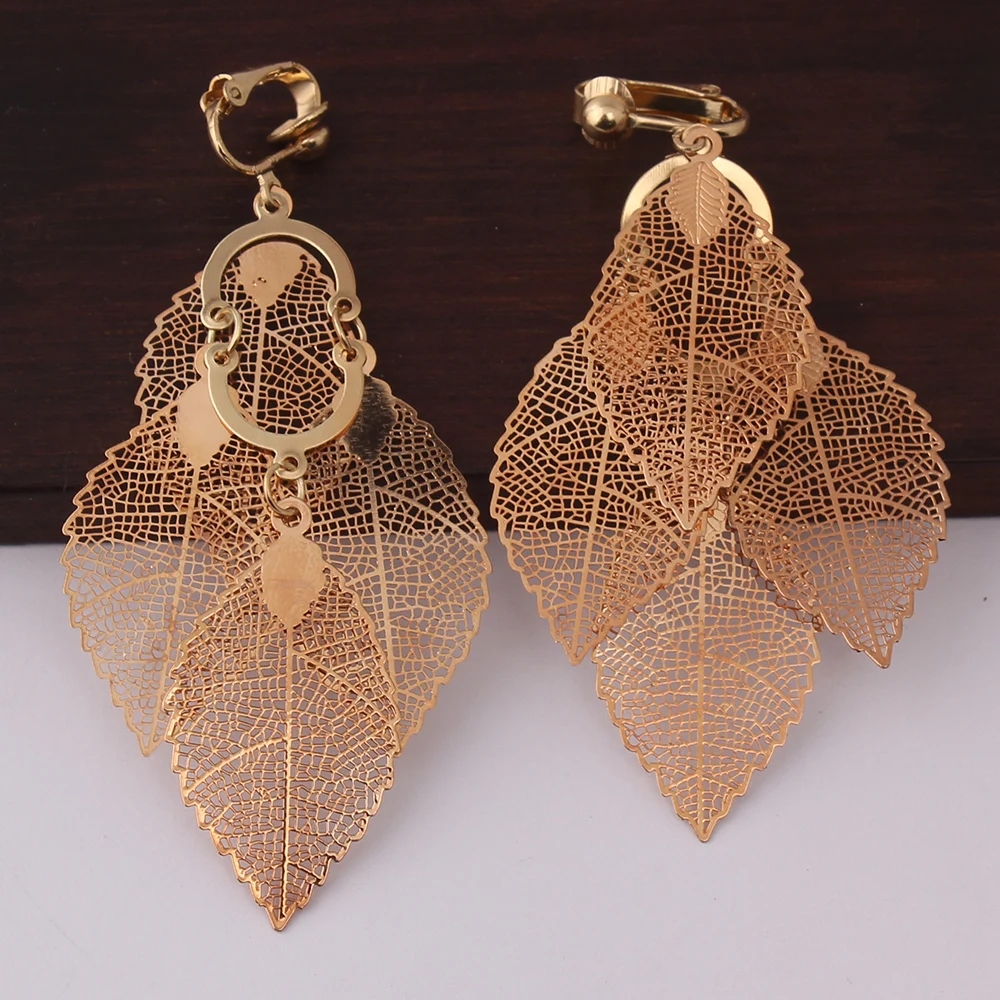 Клипсы-каффы, медные, в Корейском стиле, золотого цвета, в форме листа, элегантные, антиаллергенные, бренд GRACE JUN