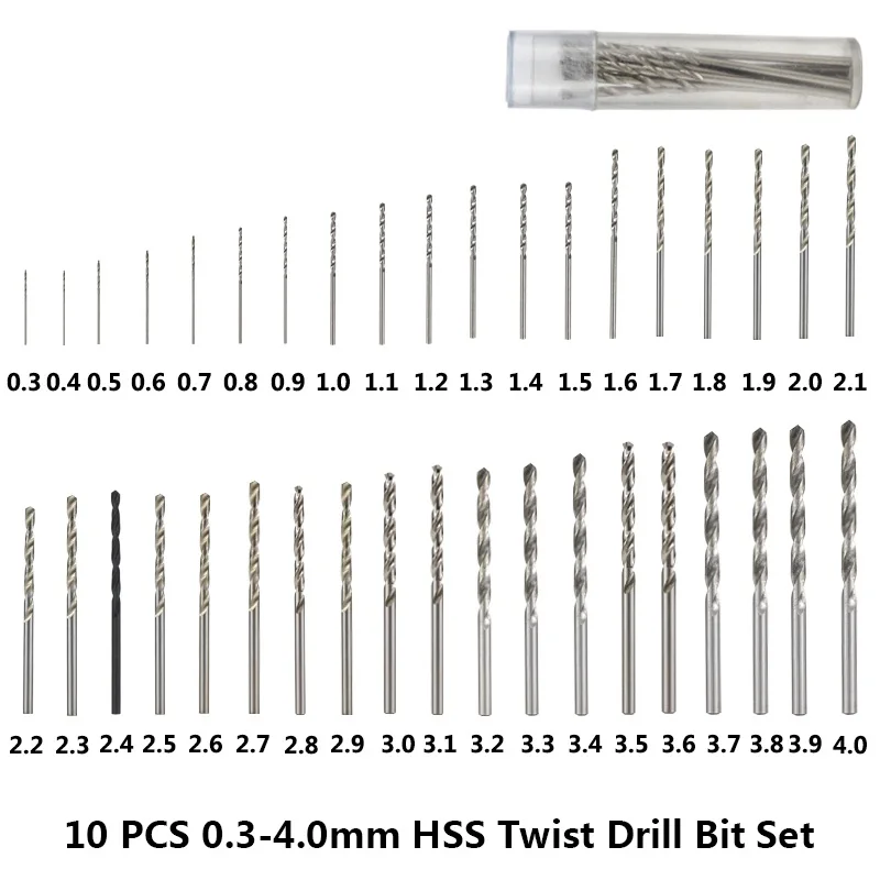 Набор спиральных Сверл из быстрорежущей стали, 0,3-4,0 мм, 10 шт.