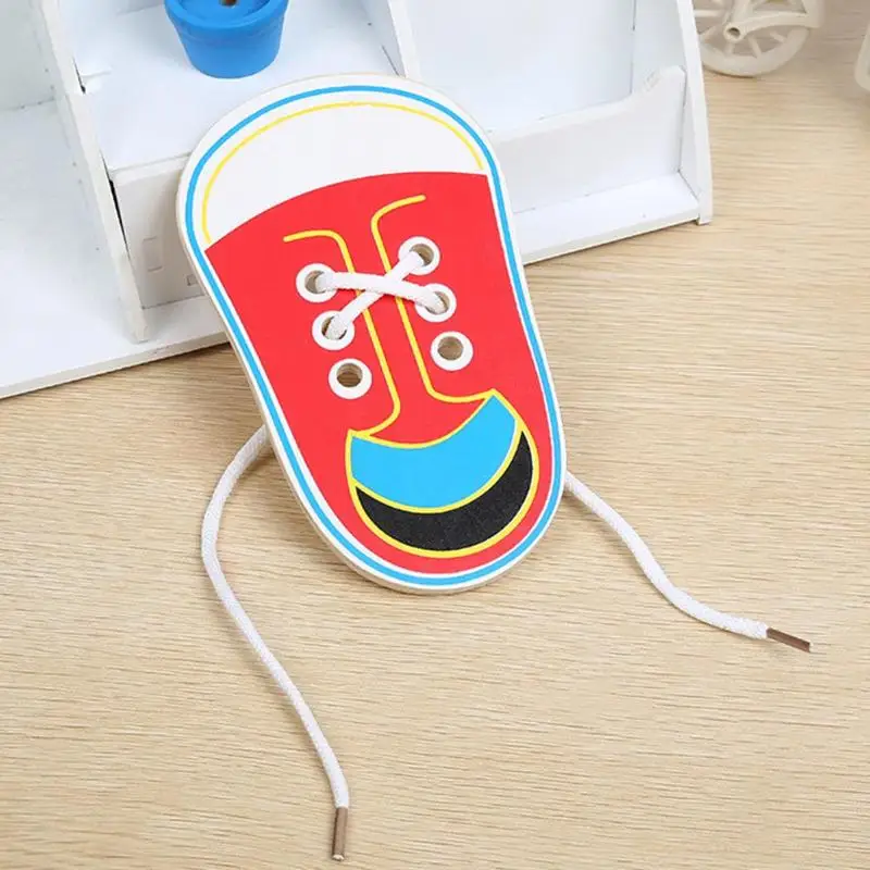 Детская деревянная обувь на шнуровке; Обучающие игрушка со шнурками для малышей