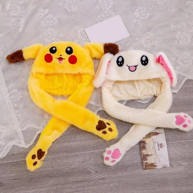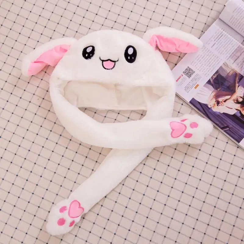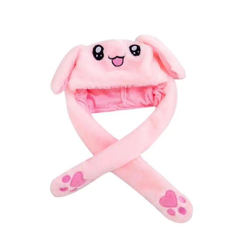 Милая плюшевая шапка с подвижными кроличьими ушками, милая светящаясяне подсвечивающаяся Детская плюшевая шапка с ручным зажимом, шапка с подвижными ушками, подарок для девочек