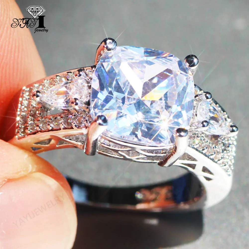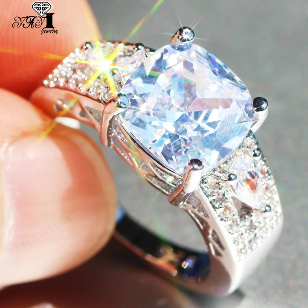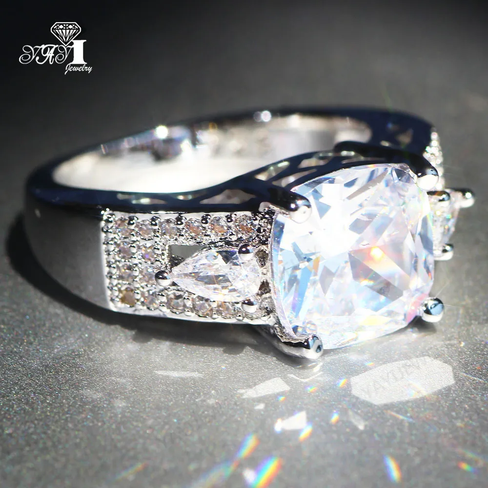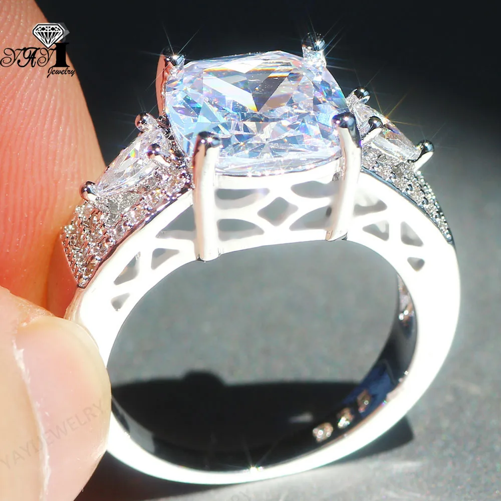 Ювелирные изделия YaYI Мода Принцесса 6.4CT серебро белый циркон Цвет обручальные кольца для свадебной съемки возлюбленных с Кольца вечерние кольца 1192