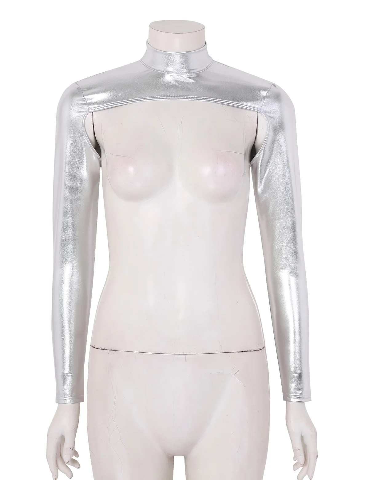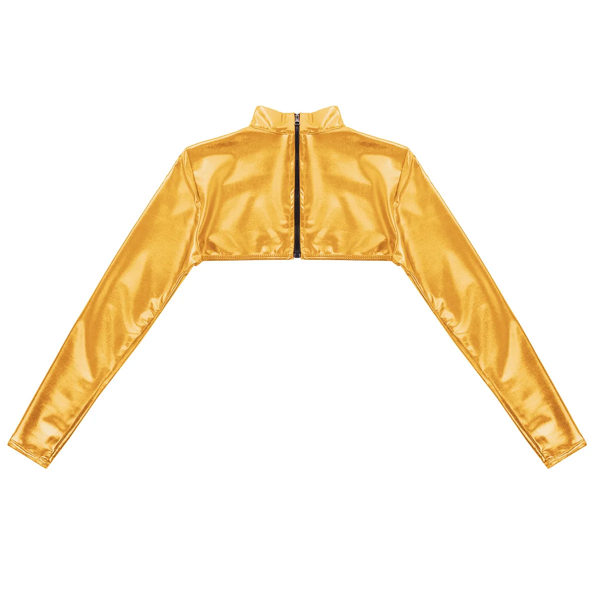 Женский Блестящий металлический короткий топ с длинным рукавом и молнией сзади, пикантная короткая мини-куртка, костюм для ночного клуба и вечевечерние, Женский танцевальный костюм