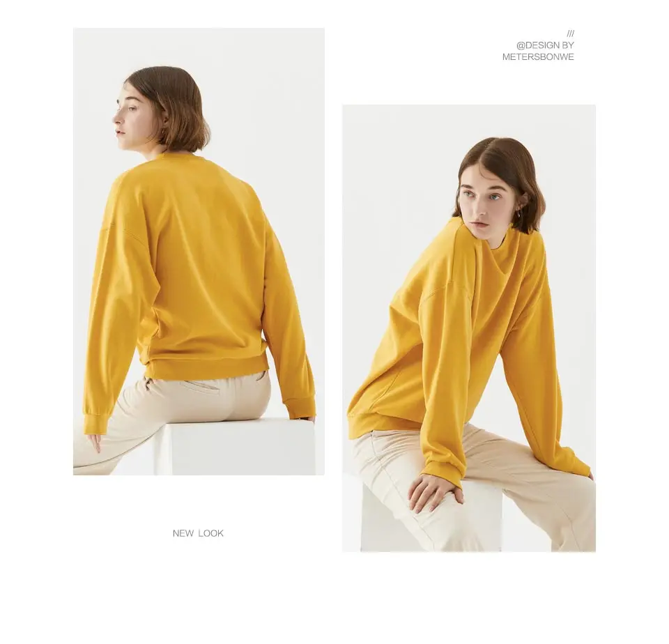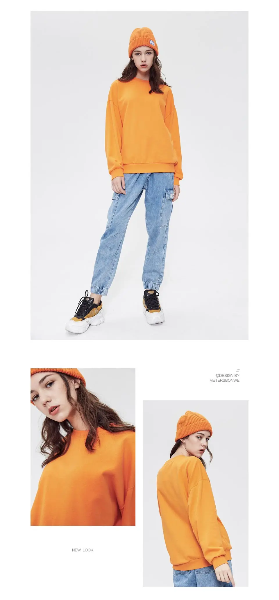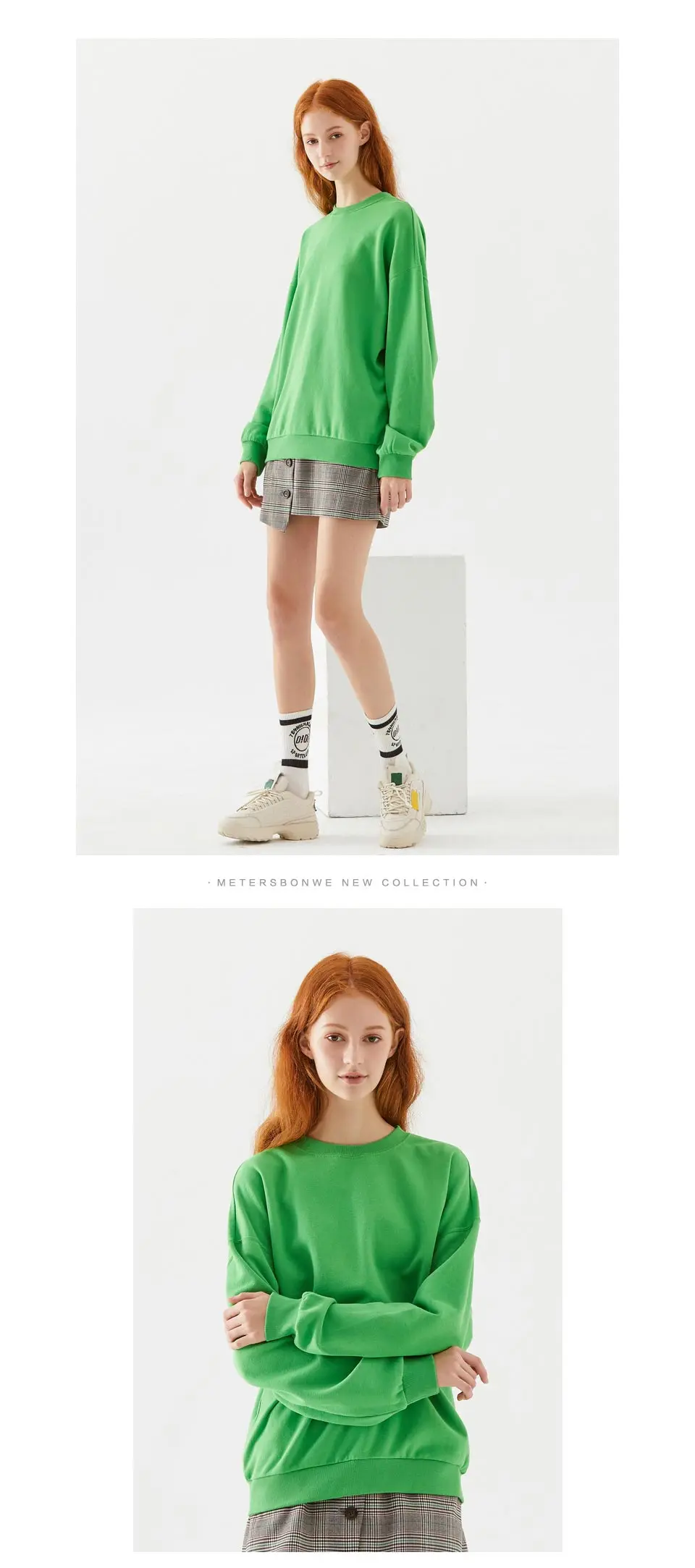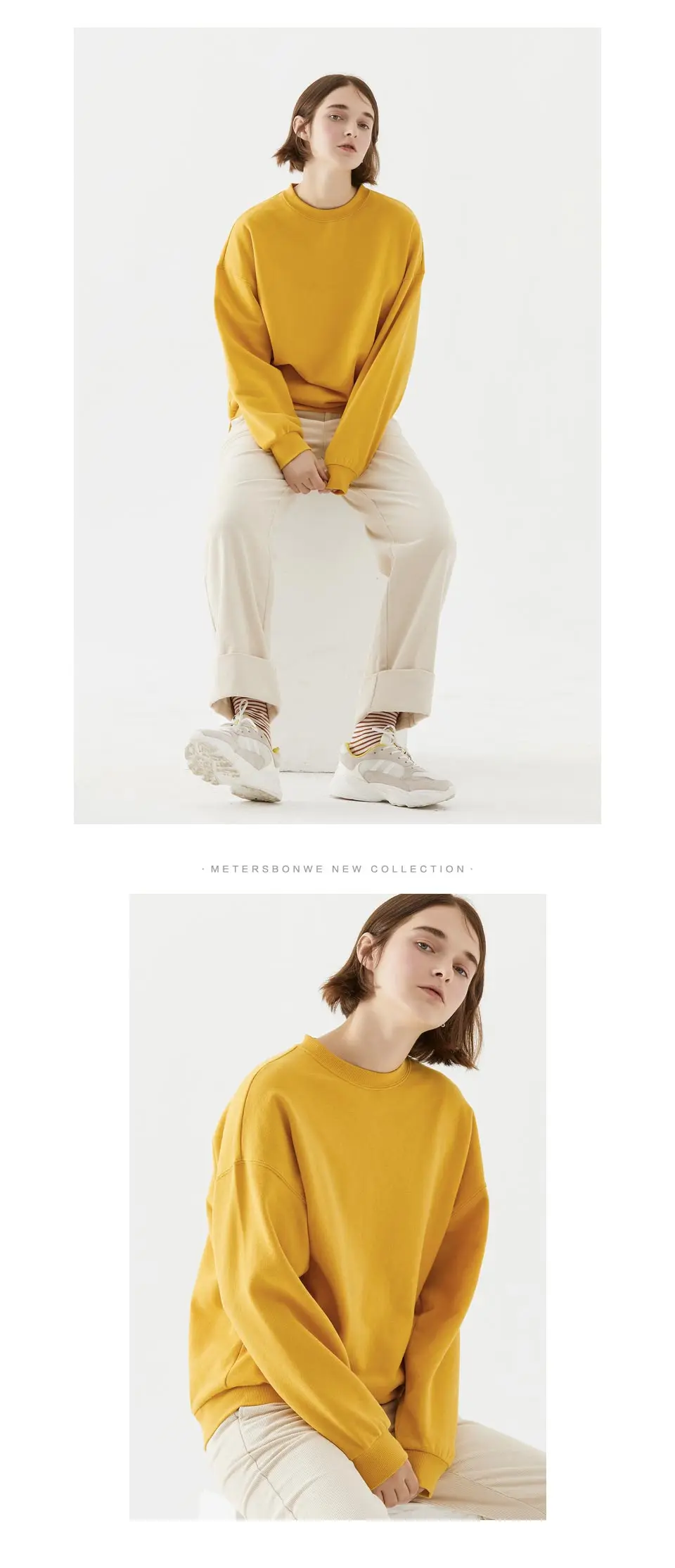 Metersbonwe Зимняя Новая удобная толстовка, Женская плотная трикотажная кофта с бархатным утеплителем, однотонный пуловер